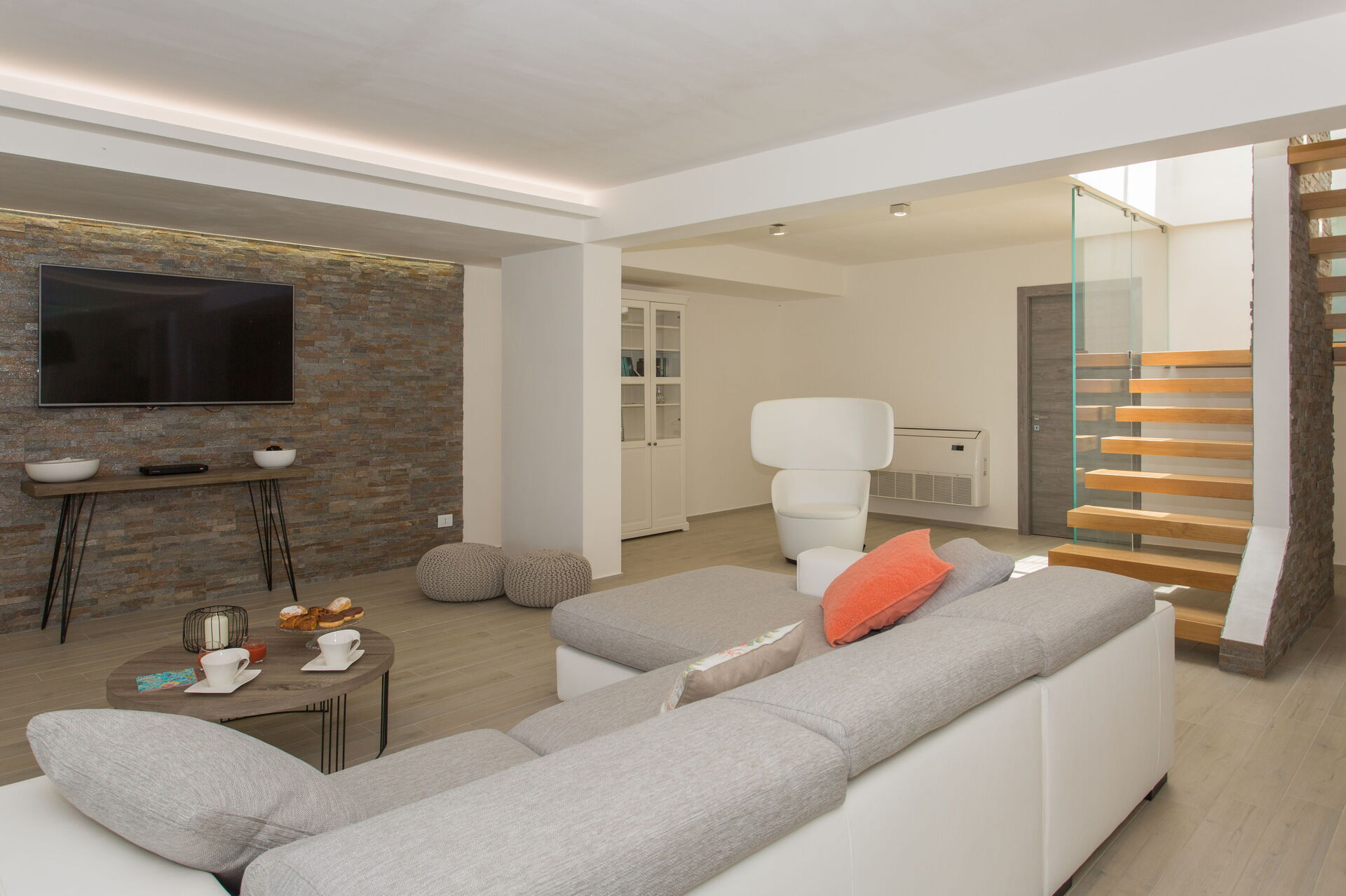 Nestled in the countryside, but at the same time a short distance away from both rocky and sandy beaches, it is perfect for a family or group of friends who are looking for a relaxation vacation, and to enjoy breathtaking views of the surrounding landscape and the sea.