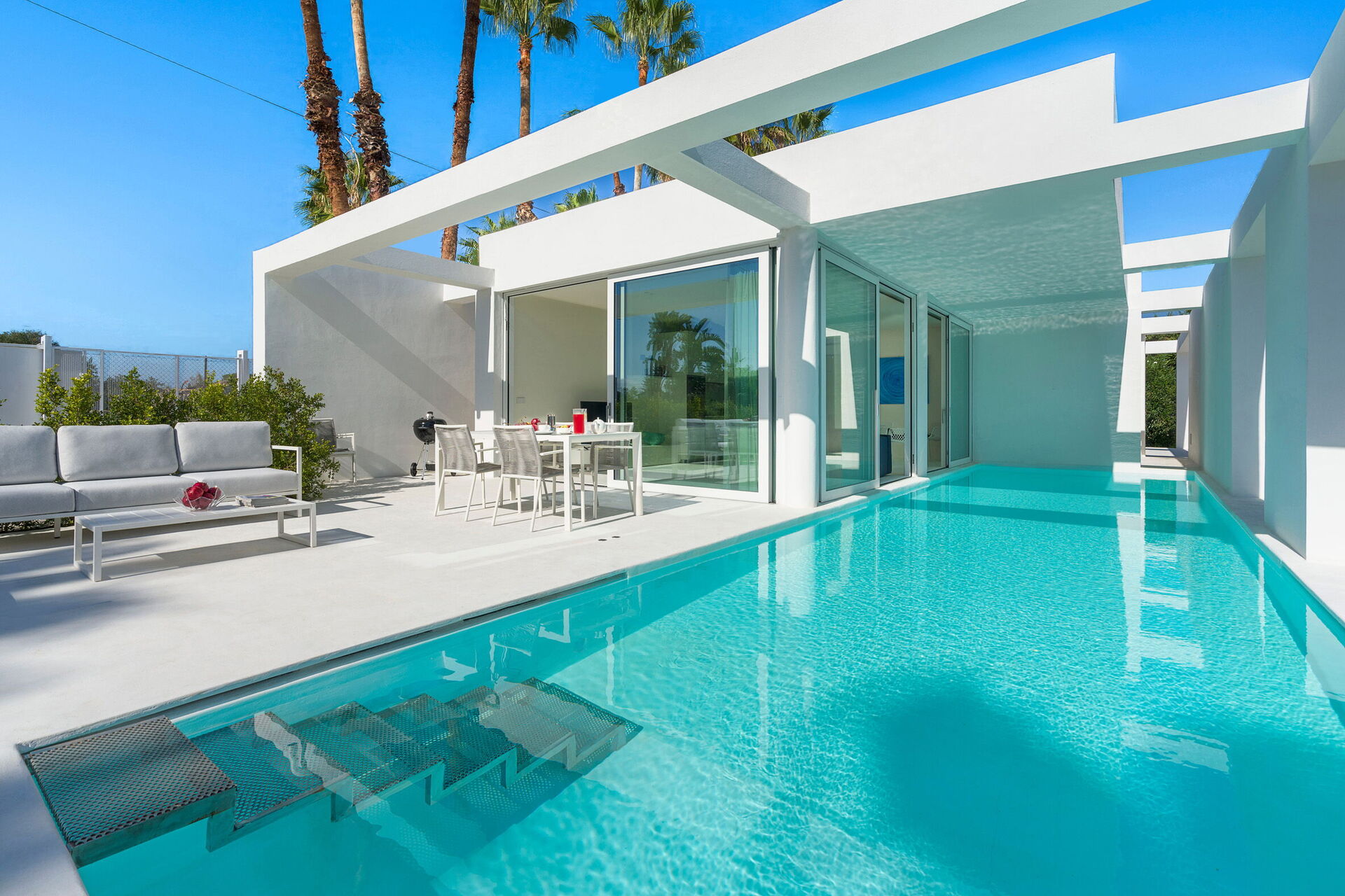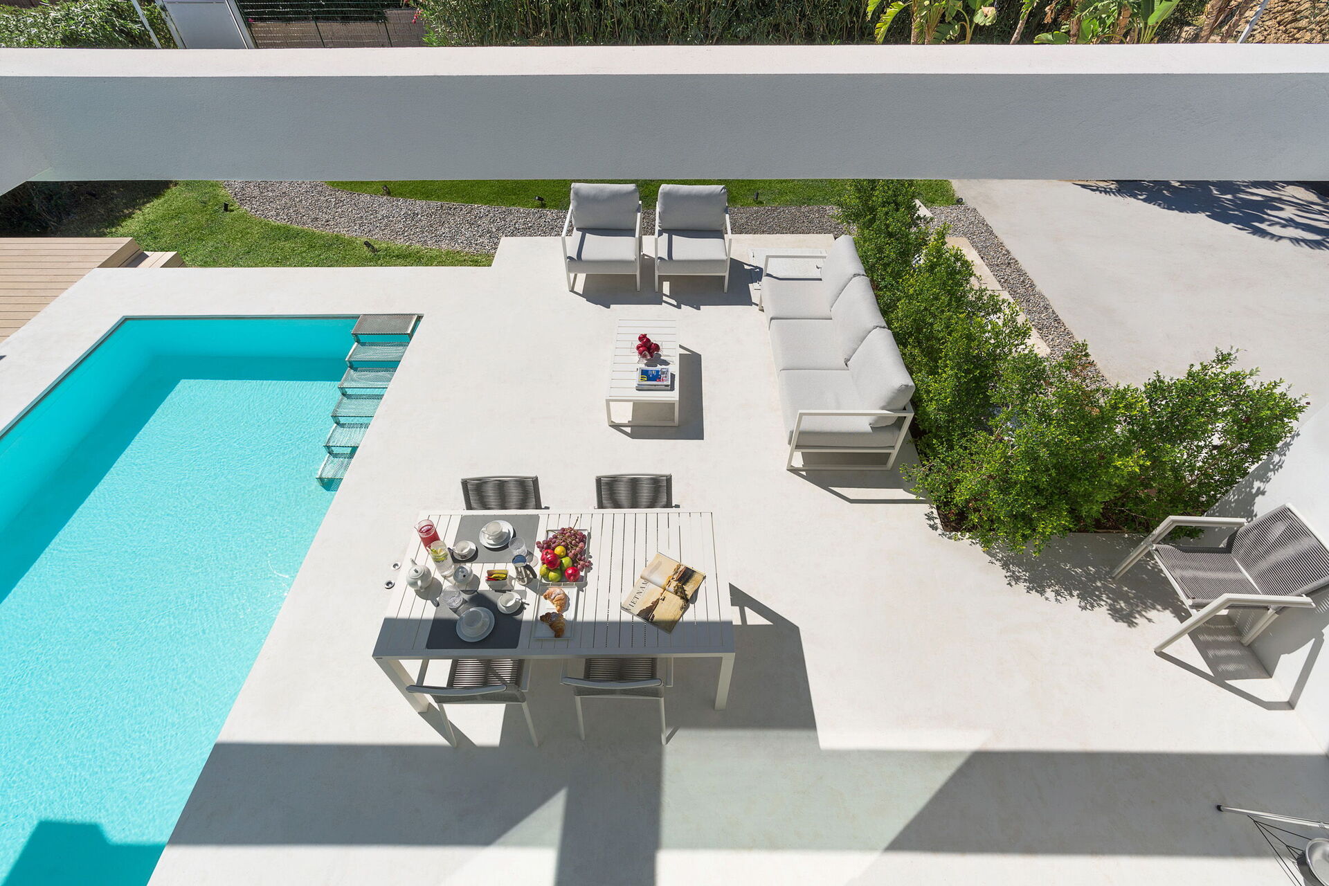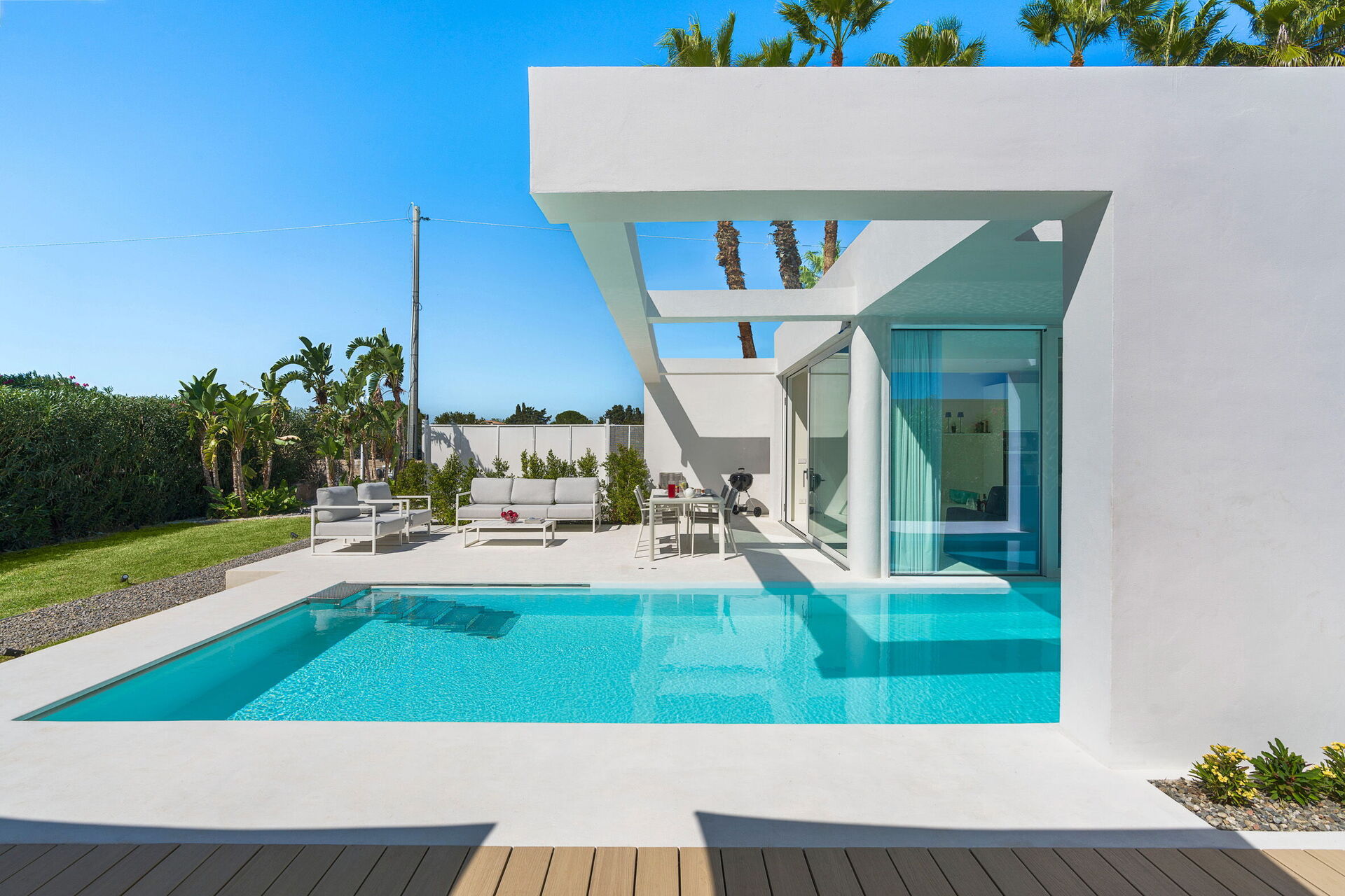 Modern both inside and outside, the villa offers bright, welcoming interiors, contemporary design furnishings, and well-appointed outdoor spaces for an unforgettable, relaxing experience.
