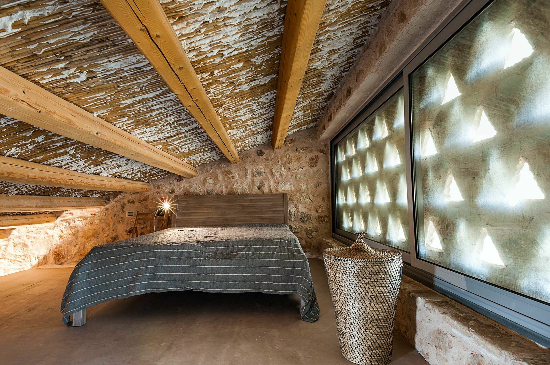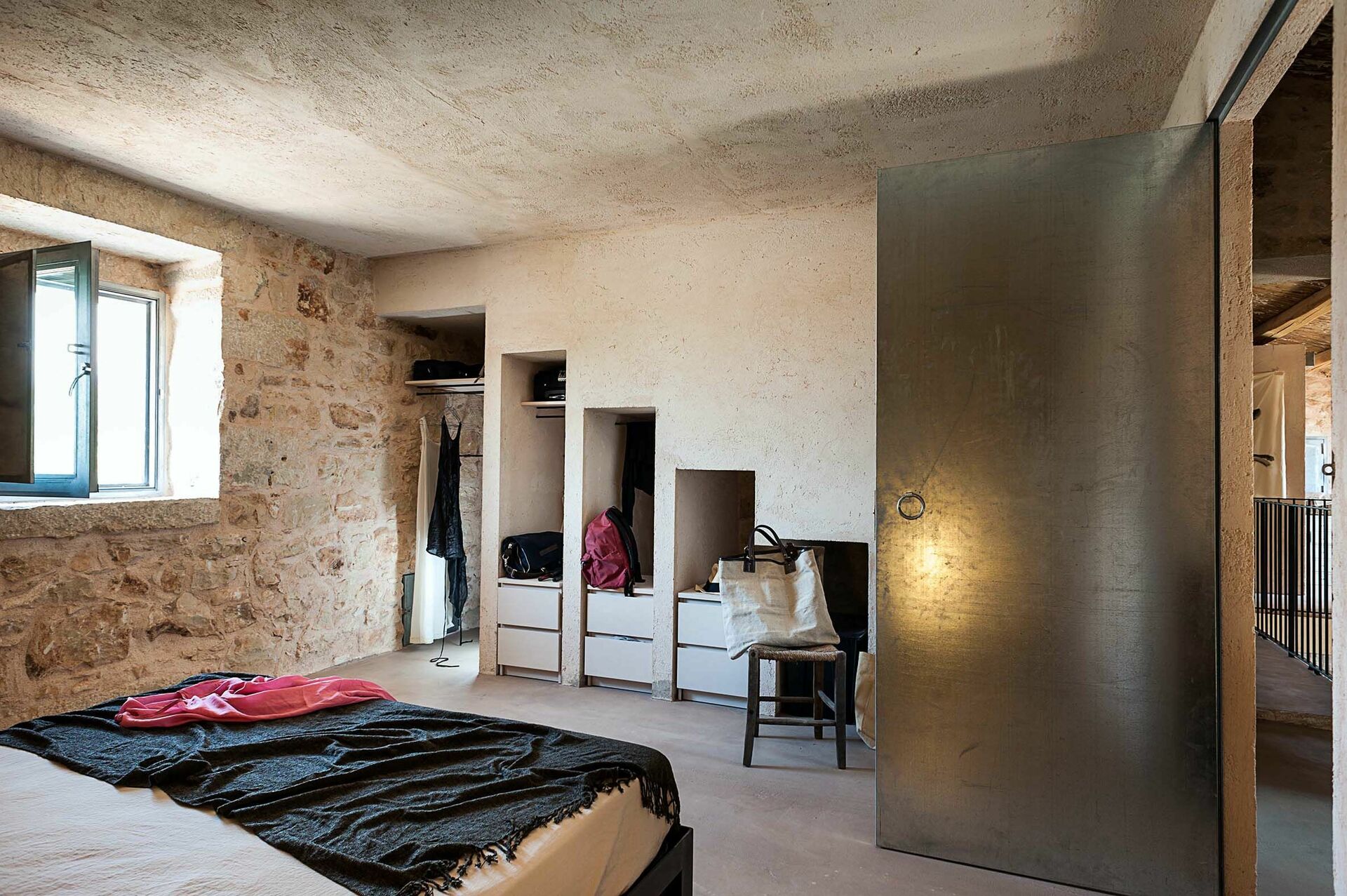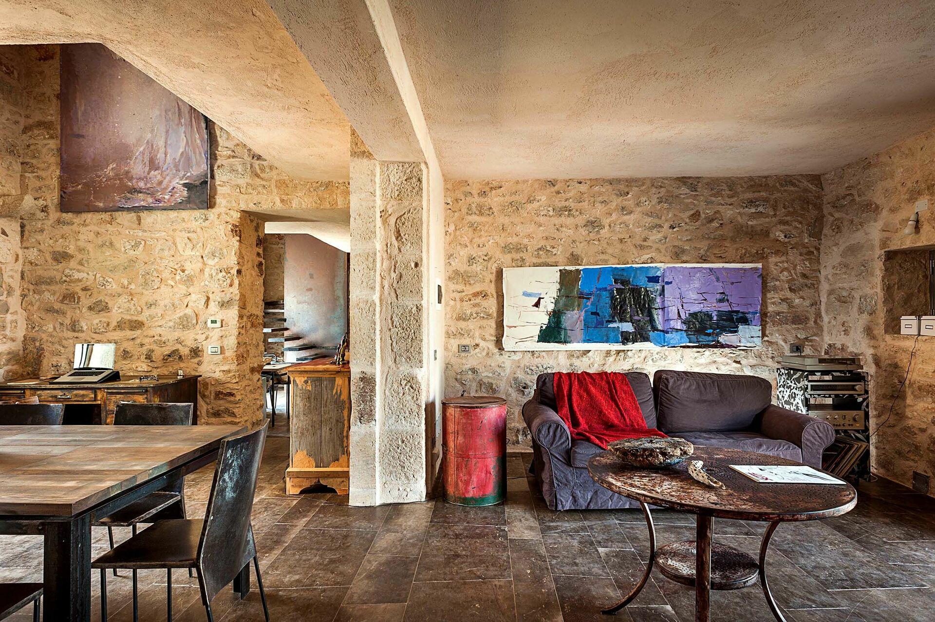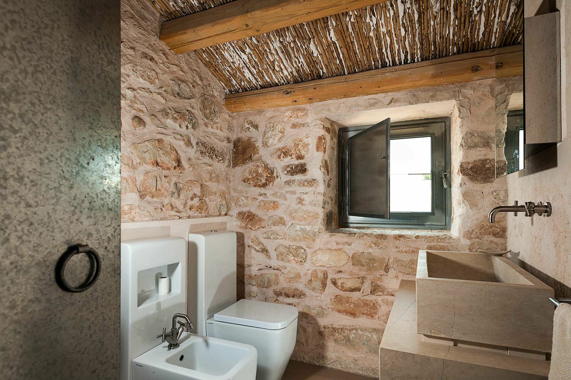 Enclosed by traditional dry stone walls, the property features a beautiful swimming pool, expansive sun-soaked terraces, and a delightful internal courtyard. The interiors blend natural stone, wood, and steel with stylish design elements, perfectly complementing the home's timeless aesthetic.