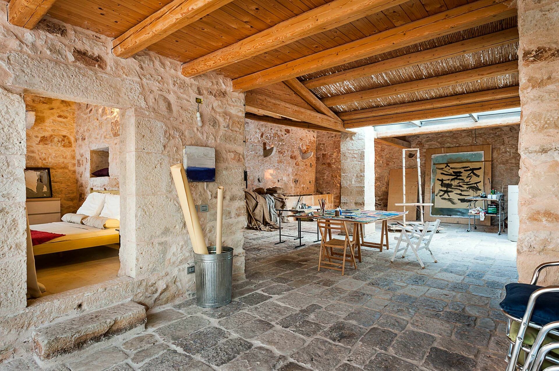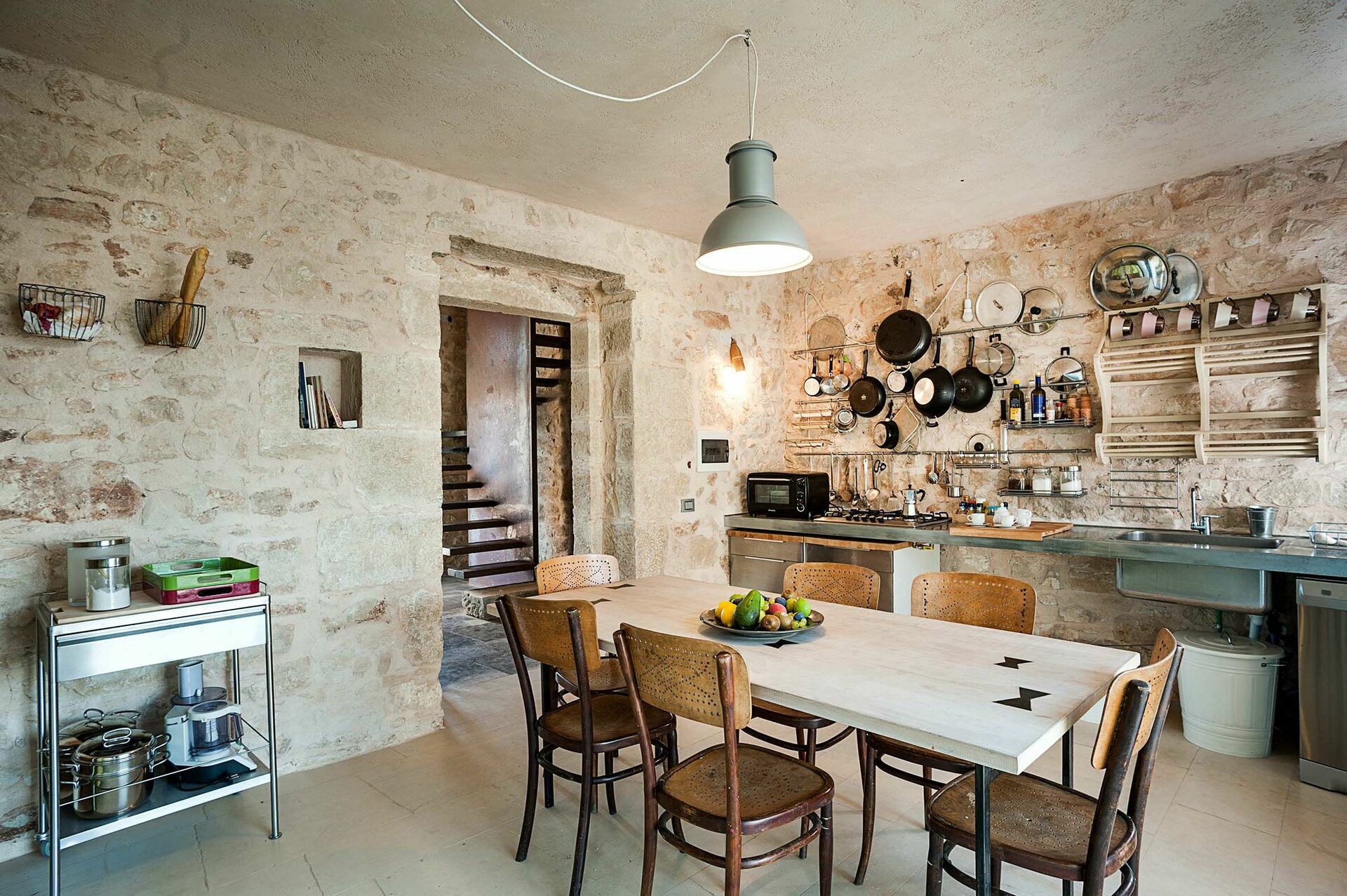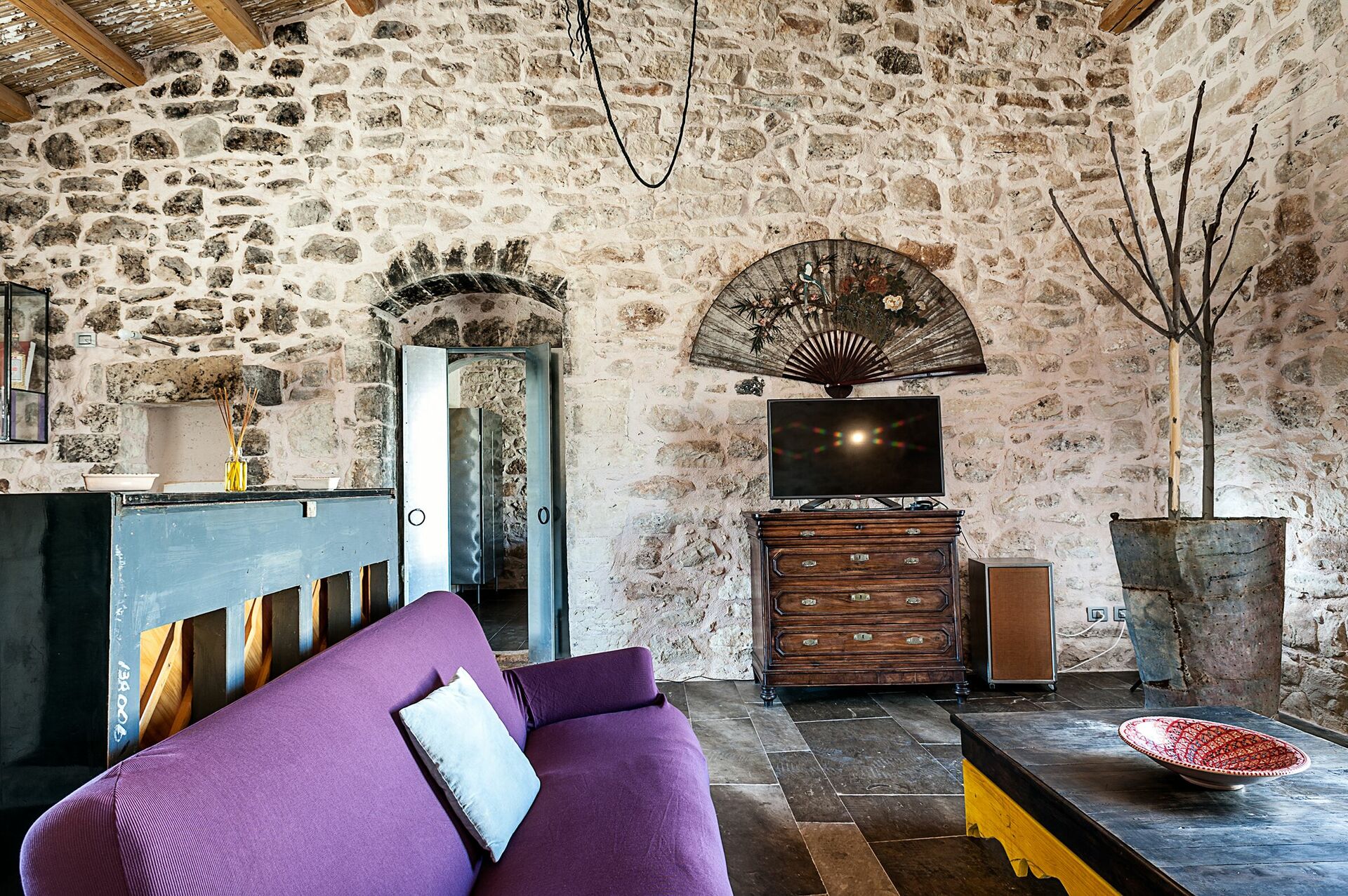 Enclosed by traditional dry stone walls, the property features a beautiful swimming pool, expansive sun-soaked terraces, and a delightful internal courtyard. The interiors blend natural stone, wood, and steel with stylish design elements, perfectly complementing the home's timeless aesthetic.