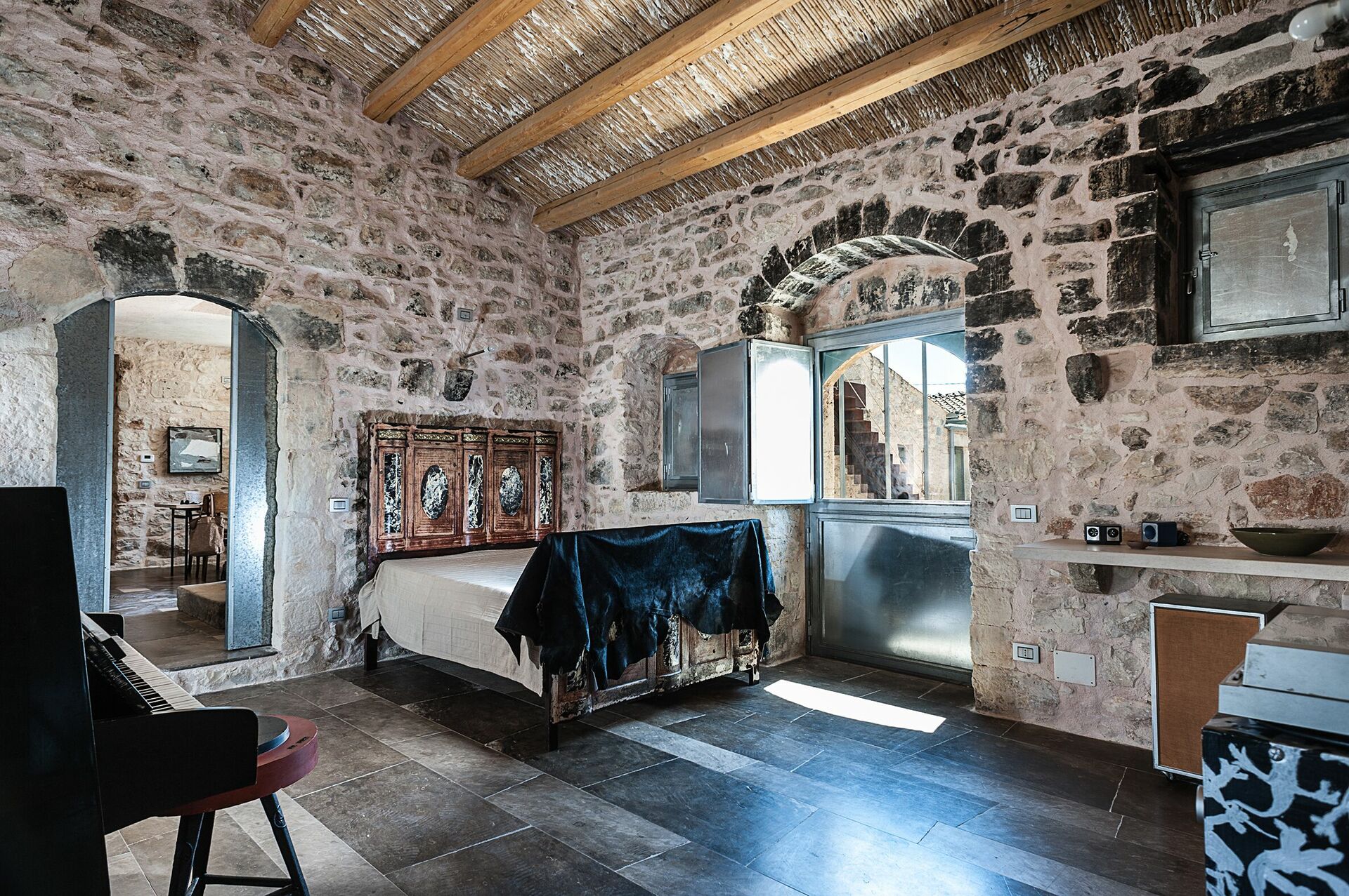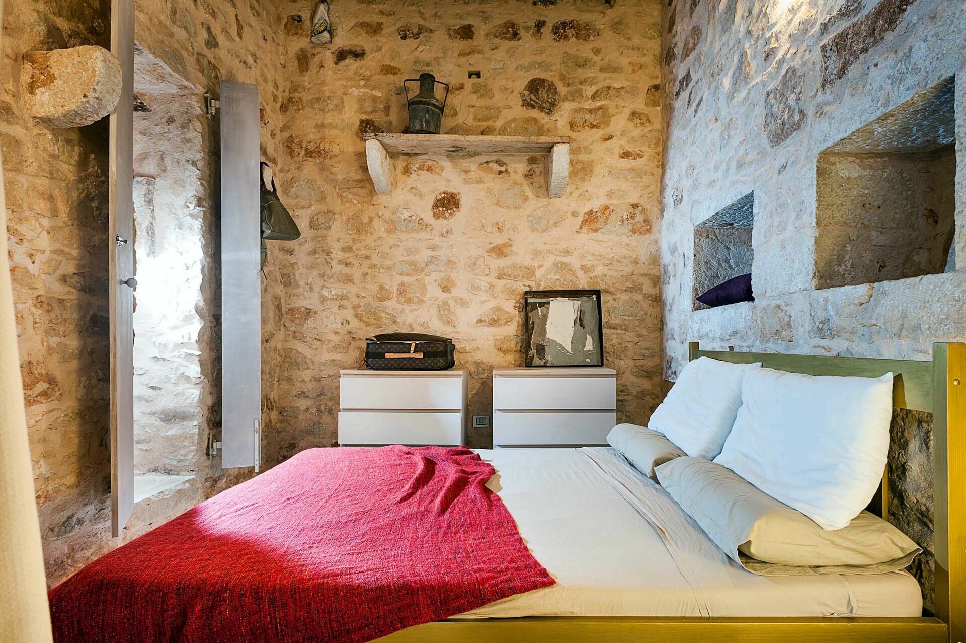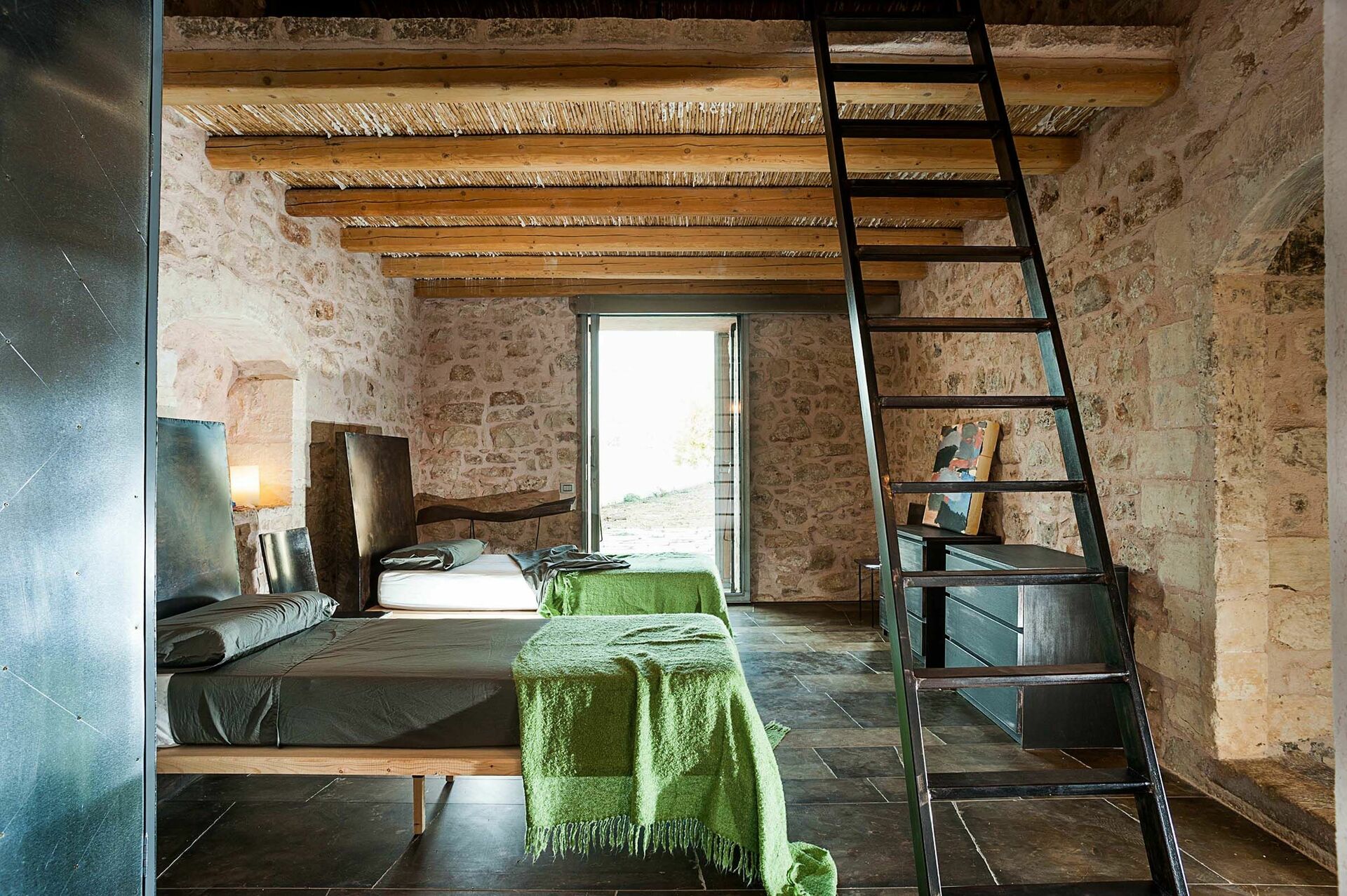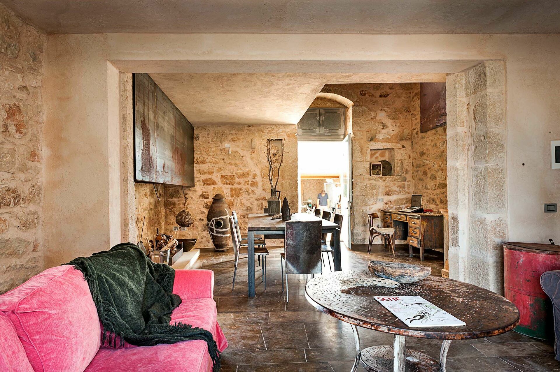 Enclosed by traditional dry stone walls, the property features a beautiful swimming pool, expansive sun-soaked terraces, and a delightful internal courtyard. The interiors blend natural stone, wood, and steel with stylish design elements, perfectly complementing the home's timeless aesthetic.