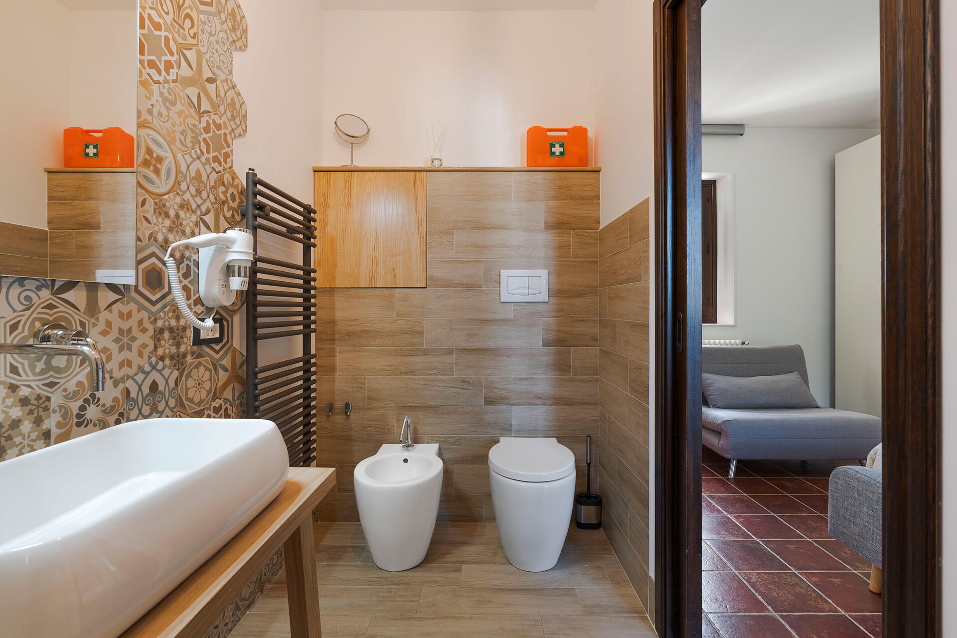 Ground floor: double bedroom (bed dimensions: 180 x 200 cm) with a private bathroom with shower with veranda access, double bedroom (bed dimensions: 160 x 200 cm), bathroom with shower.