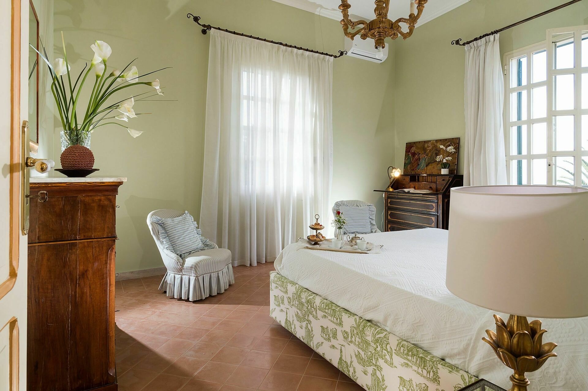 Its cosy interior is decorated with pastel colours and matching curtains and fabrics and is equipped with all mod cons, such as air conditioning, internet Wi-Fi, satellite TV, washing machine and dishwasher.