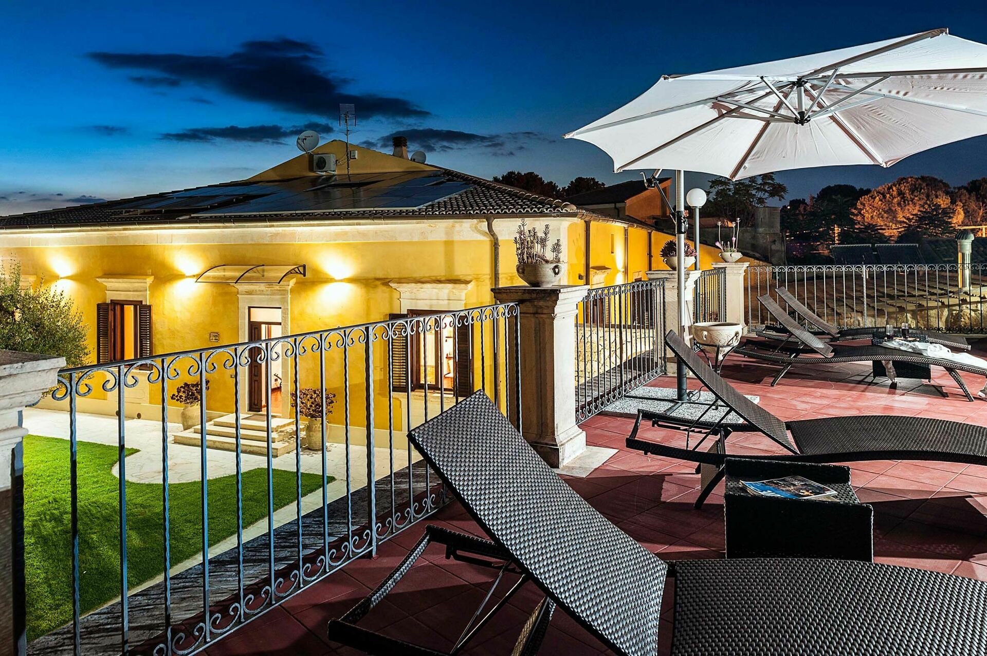 Outdoor living areas of the holiday villa rental include spacious, sunny terraces and the beautiful private swimming pool. The strategic location of Villa Carolina is also ideal for exploring the charming surrounding area. Syracuse and Ortigia, Modica, Ragusa and other towns of the Noto Valley, the Roman Villa of Tellaro, Marzamemi and the nature reserves of Cavagrande del Cassibile and Vendicari are all a few kilometres away.