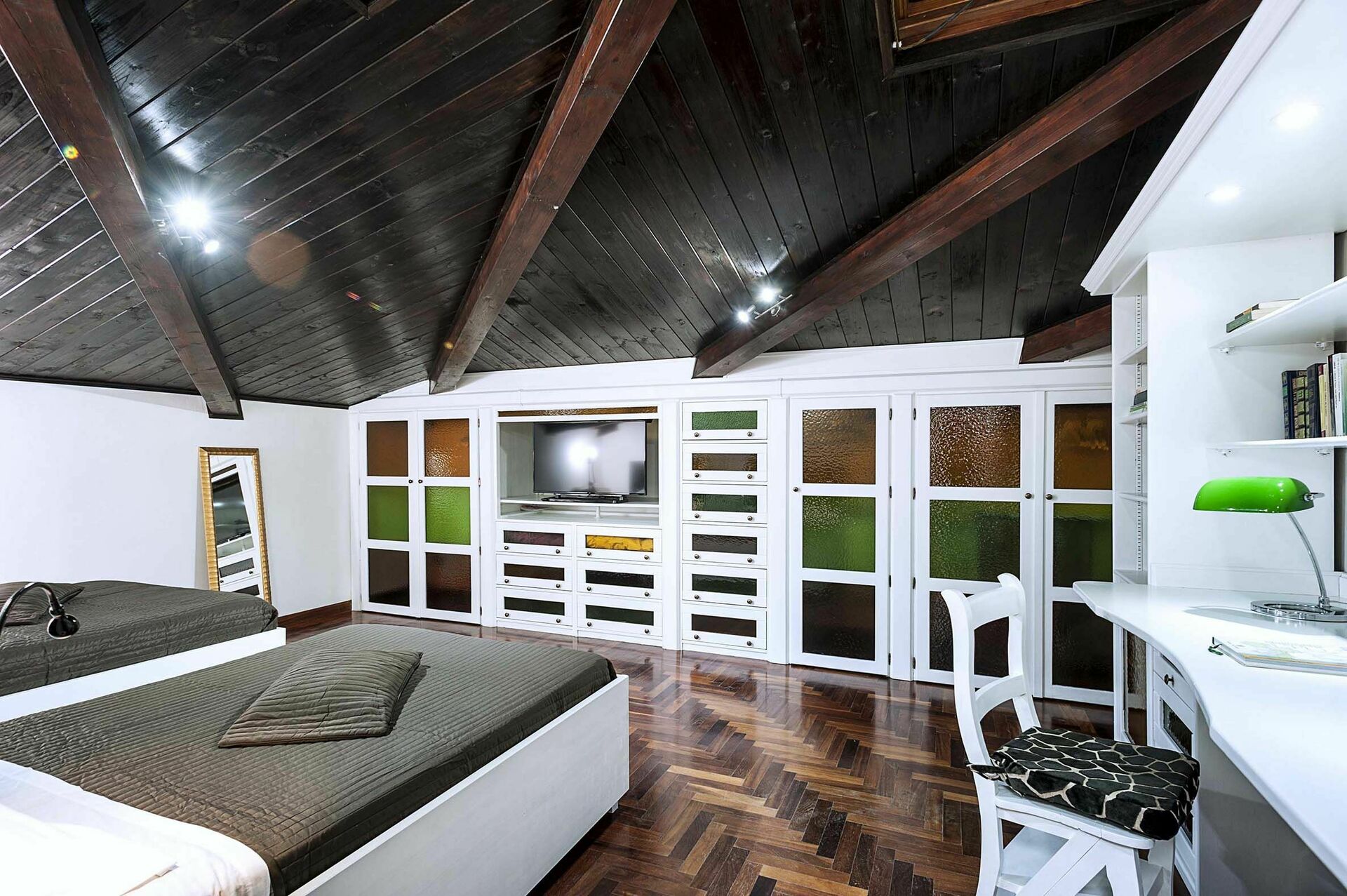 First floor: 2 double bedrooms, bedroom with 2 large single beds, 2 bathrooms with shower.