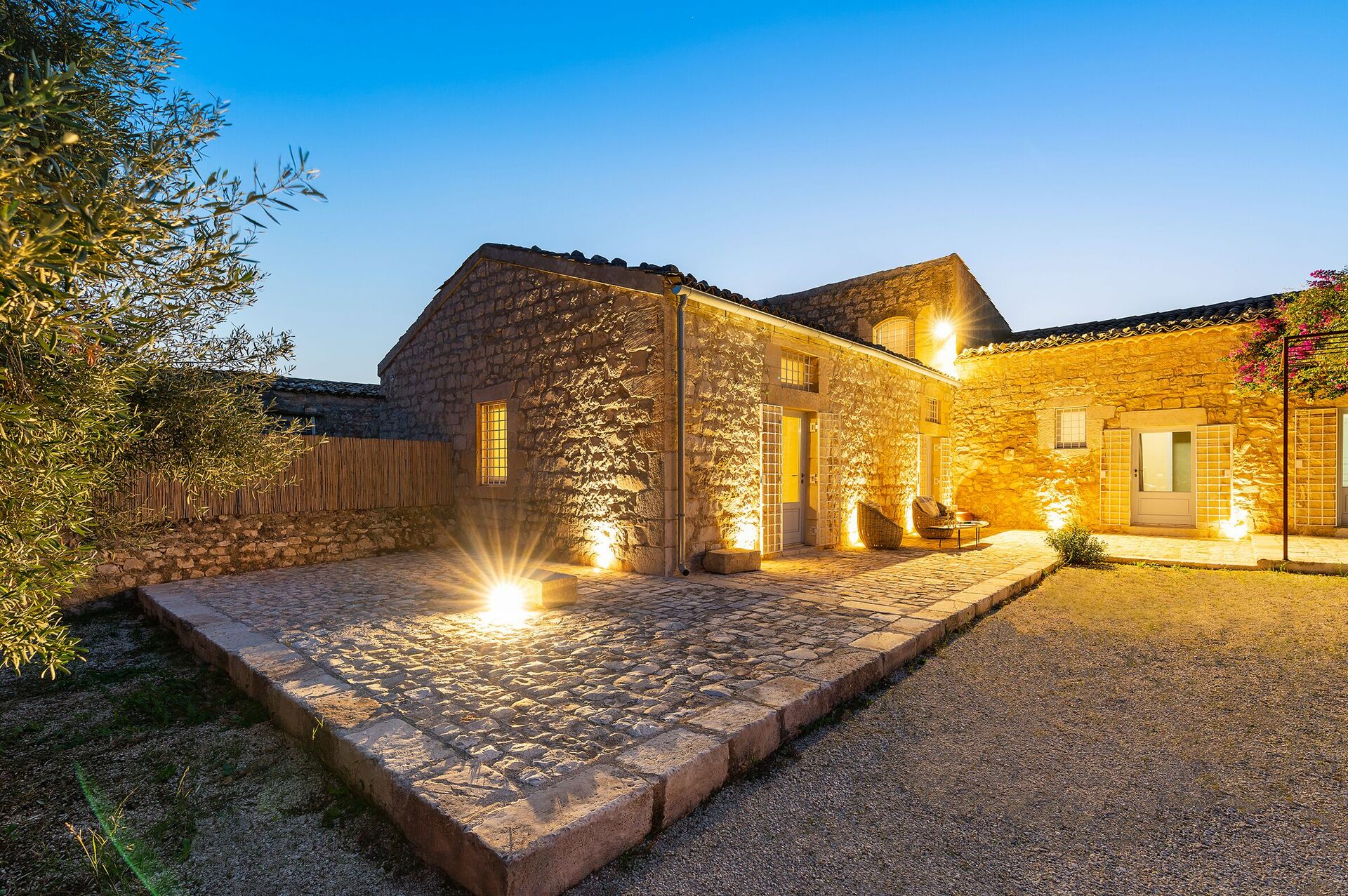 Villa Dimora Pura is an exclusive estate for an unforgettable vacation in Sicily with family or friends. With 6 bedrooms (one in a loft), it comfortably accommodates up to 10-12 people. It is located near Scicli, the spectacular Baroque town on the UNESCO World Heritage list, and offers panoramic views. The natural park that surrounds the villa offers tranquility and privacy, and has picturesque, traditional dry stone walls.