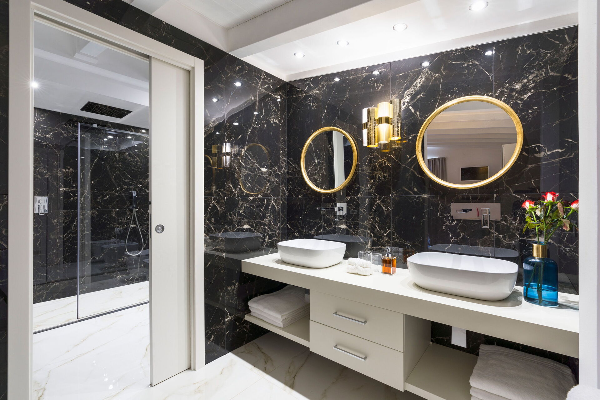 A fantastic and well-kept Mediterranean style garden encompasses this exclusive property. Set in a splendid panoramic location, it offers charming views over the surrounding landscape and the sea, to enjoy especially from its large, fully equipped terraces and overflow, saltwater pool.