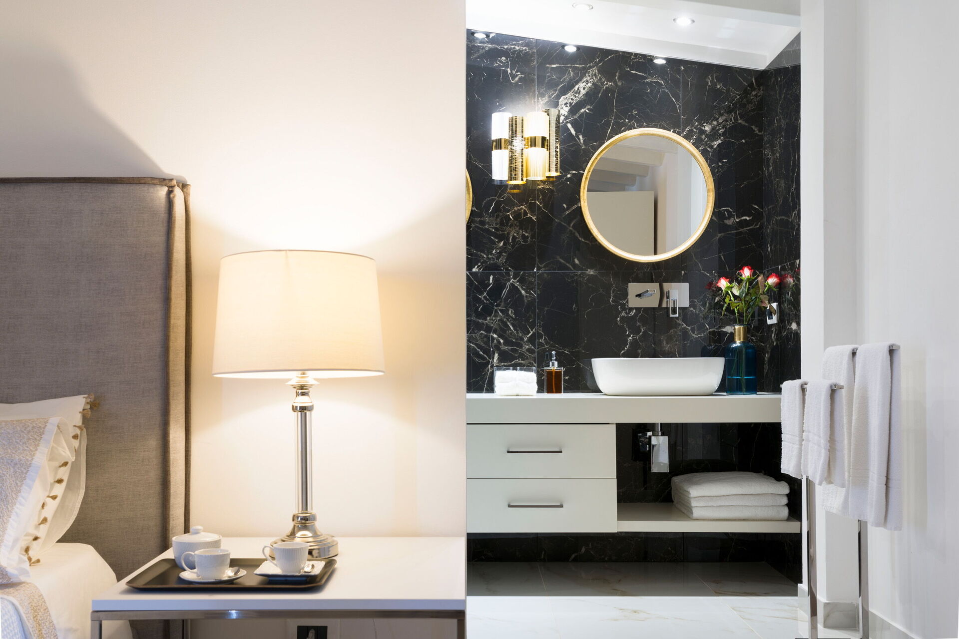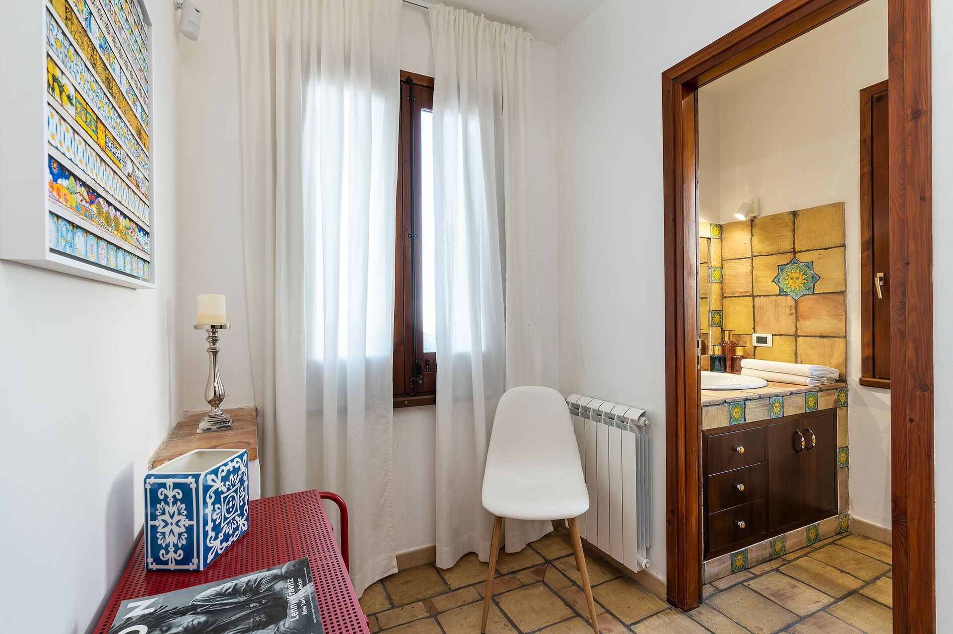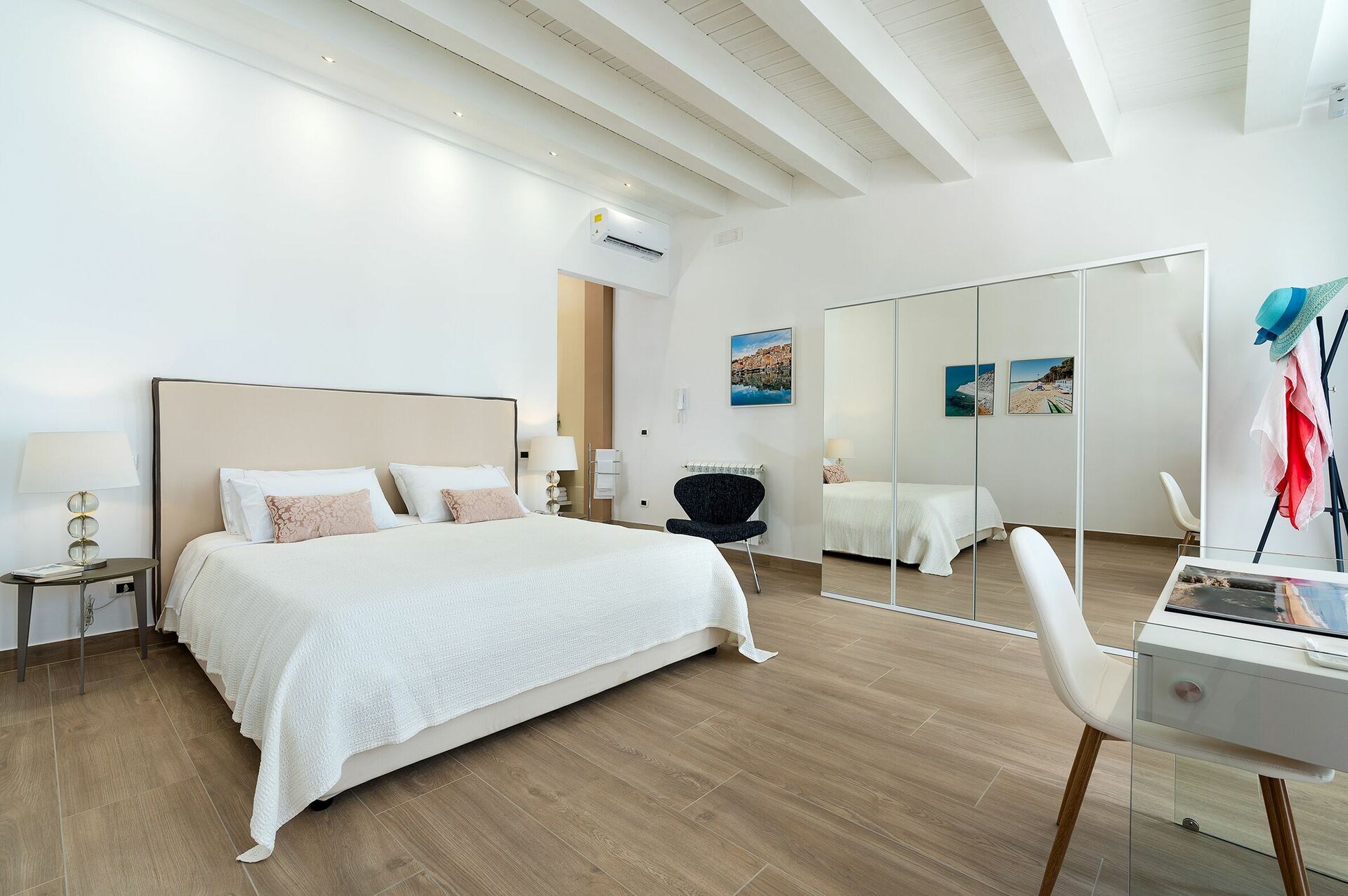 First floor: double bedroom with private bathroom with shower connected to a panoramic balcony.