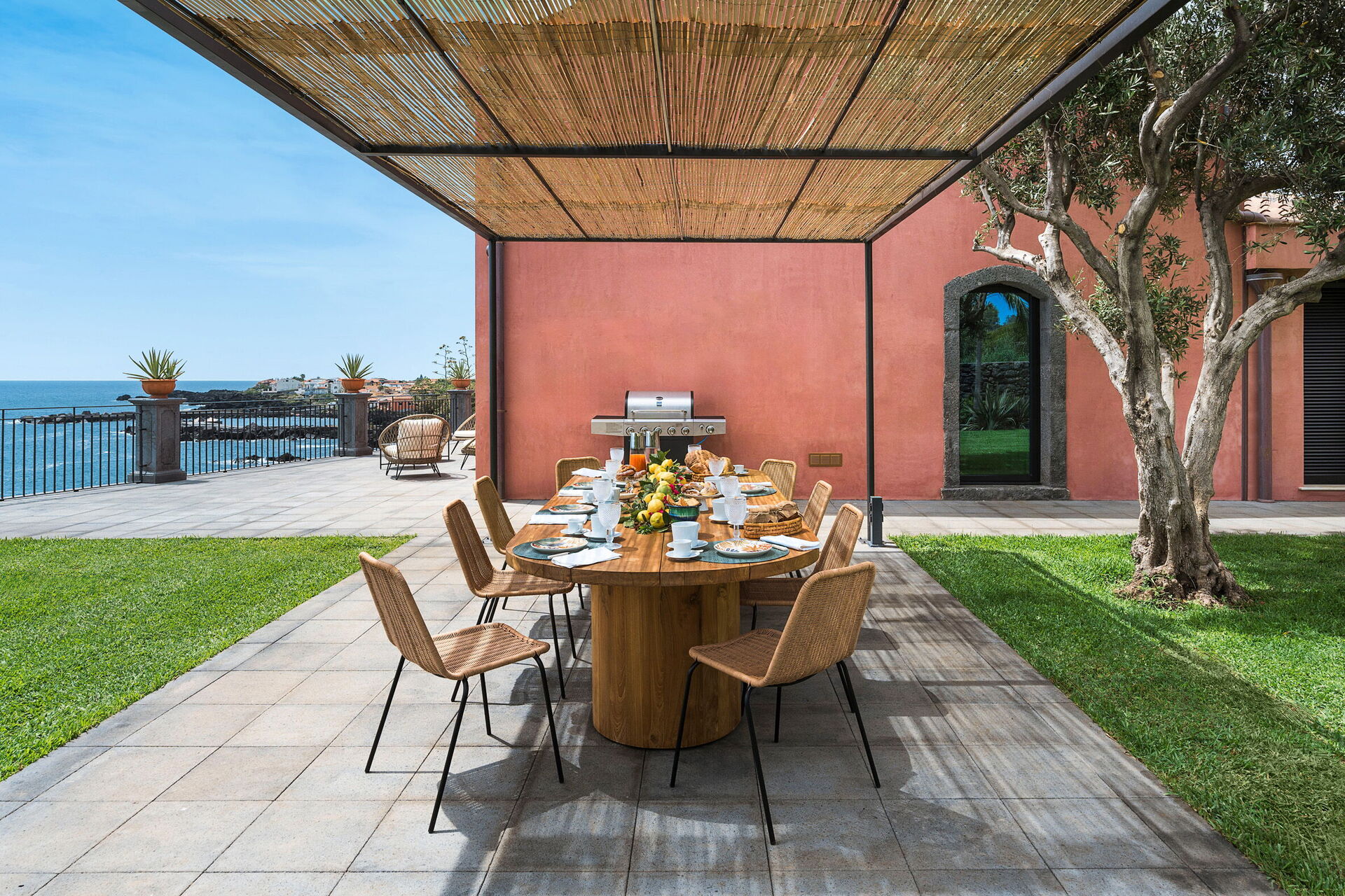 Villa Acqua Marina is the perfect villa for a pleasant, relaxing seaside vacation in Sicily: its seafront location is one of a kind, and perfect for exploring the surrounding area. Just a few kilometers away are Etna Park; the Alcantara gorges; the charming fishing villages of Aci Trezza and Aci Castello; Acireale, Catania, and Taormina.