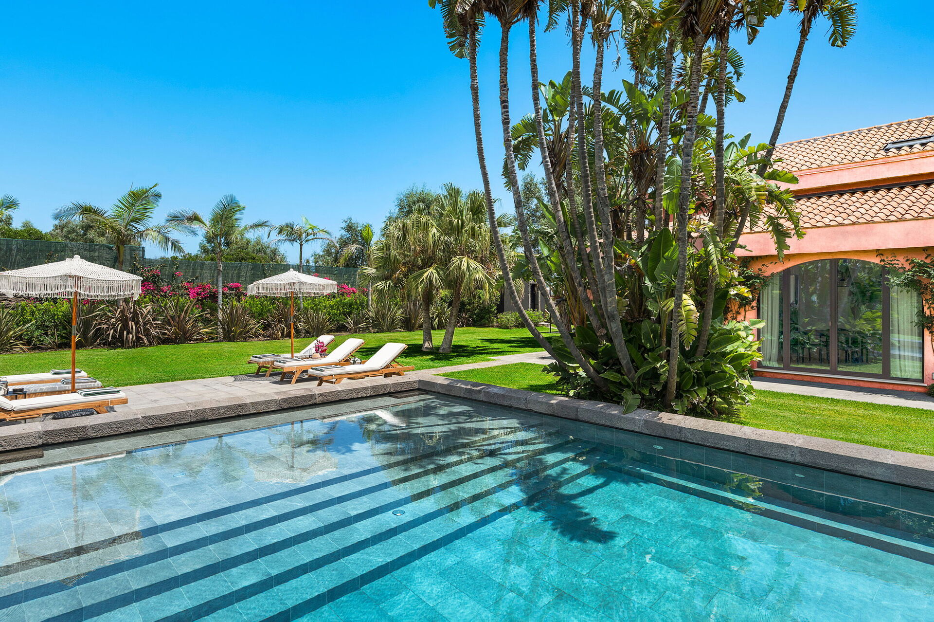 Not only is the villa surrounded by spacious terraces and a large garden, it also has an exclusive private saltwater pool.
