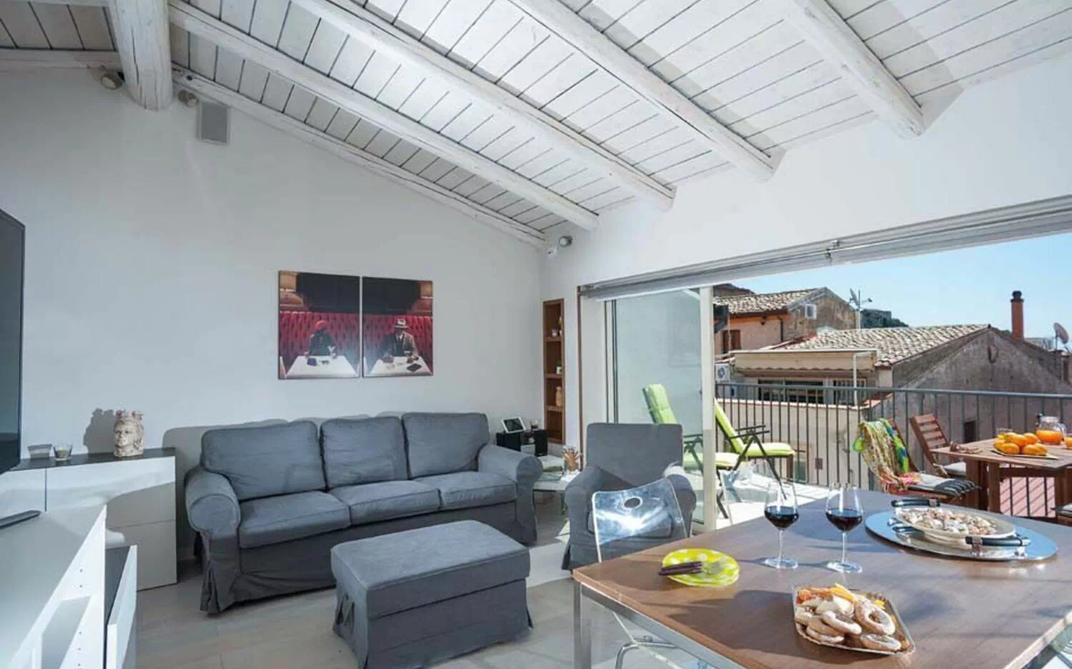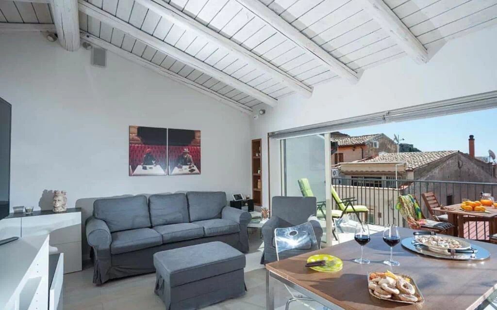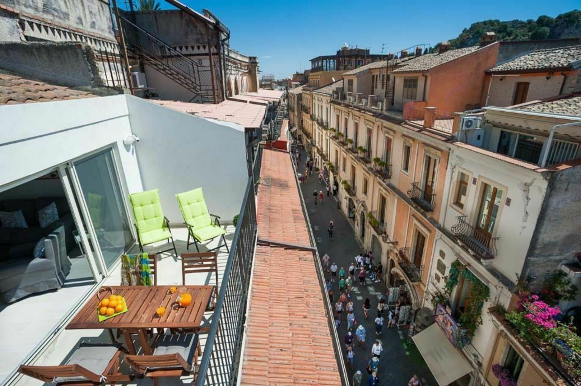 Exclusive apartment with terrace in the centre of Taormina, on the top floor of a building just a few steps away from elegant Corso Umberto.