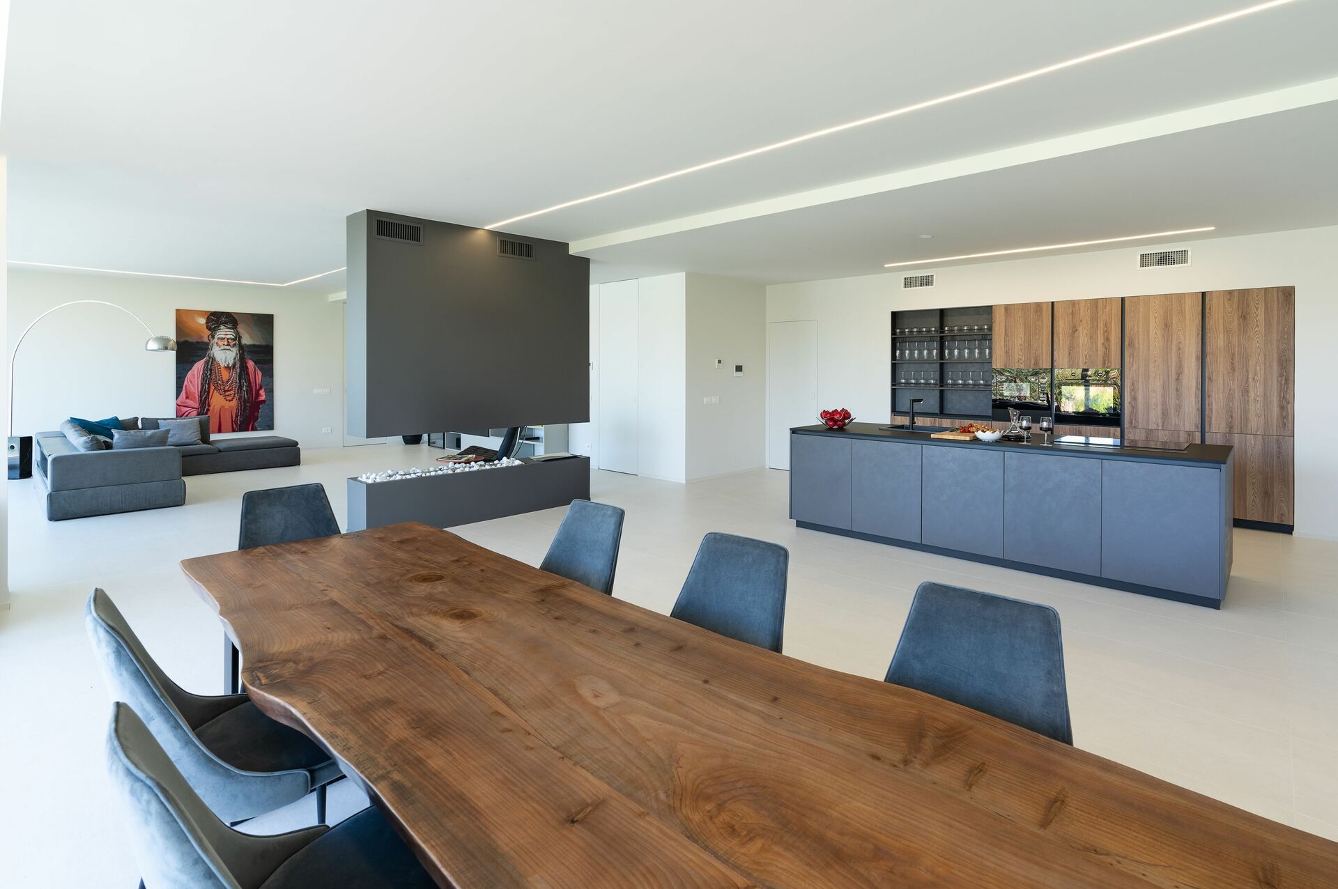Ground floor: Large living area with living room, dining room and kitchen (oven, freezer, dishwasher, coffee machines), 1 bathroom with shower, laundry room, 1 double bedroom with private bathroom with shower and jacuzzi, 2 double bedrooms each with private bathroom with shower, wellness area (sauna).