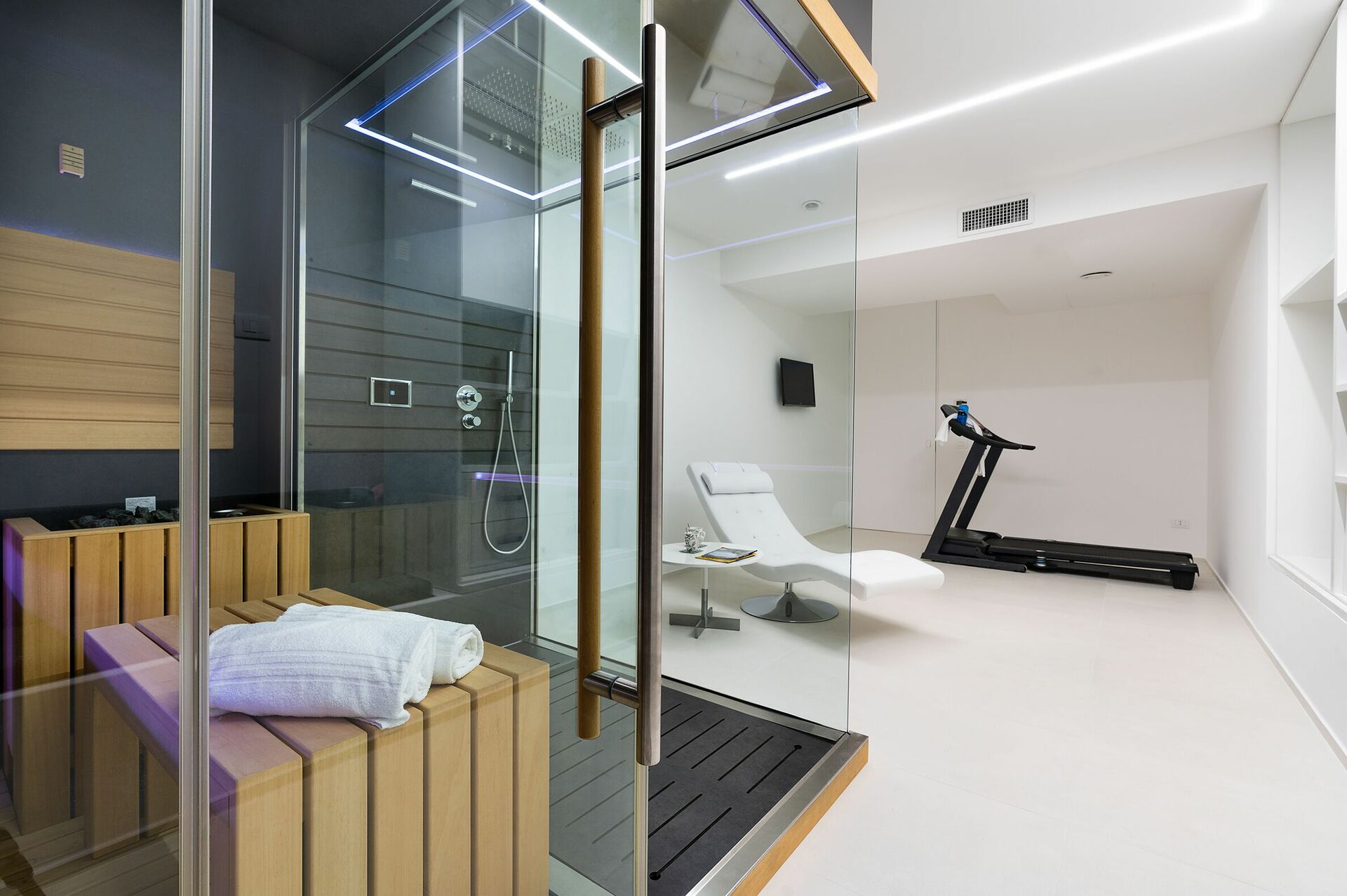 - wellness area with sauna and a treadmill