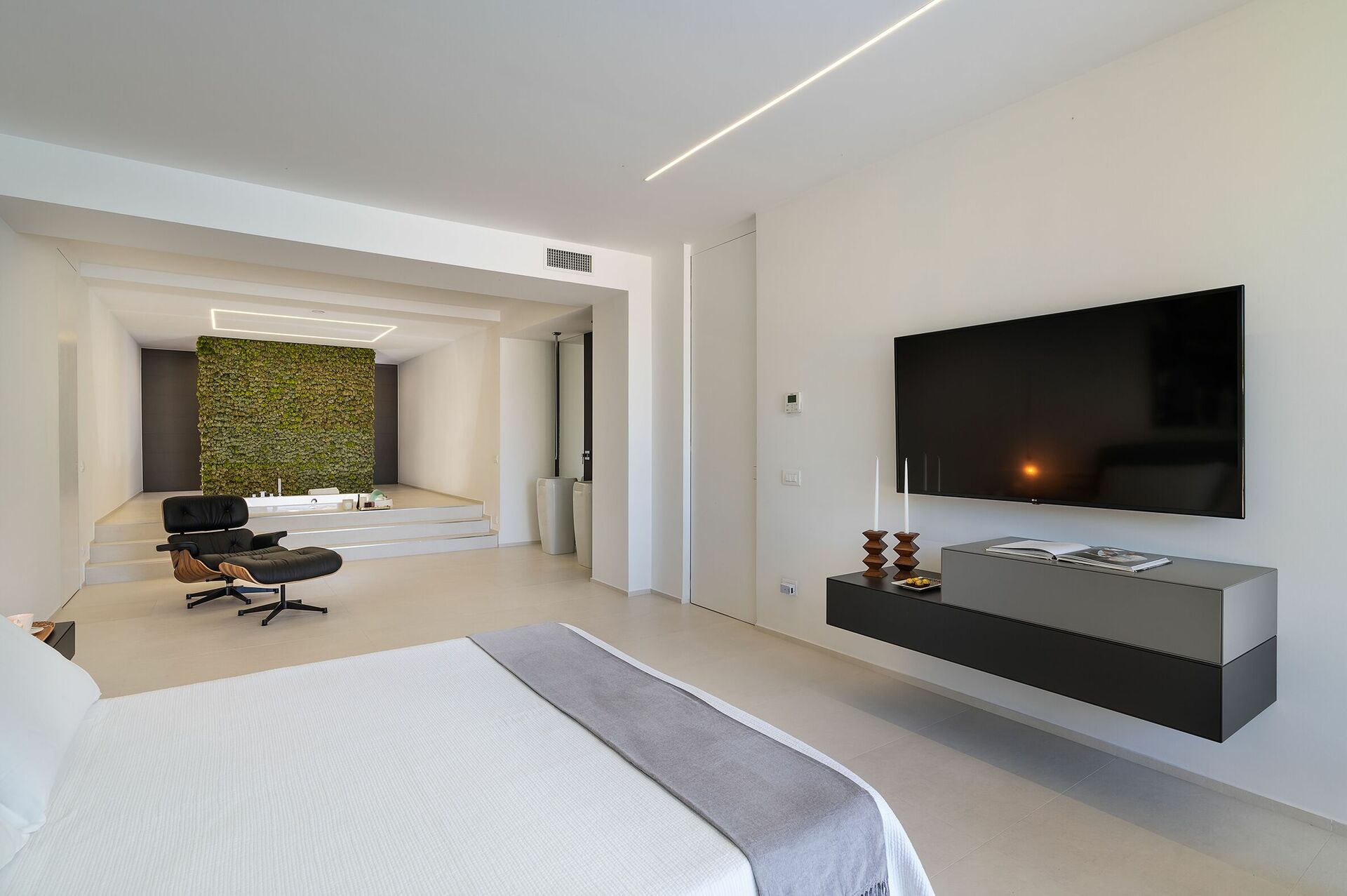 This exclusive, newly built contemporary villa consists of a main house and an annex. Set on two levels, the manor house features bright, cosy interiors with large glass doors open onto the garden and the surrounding landscape.