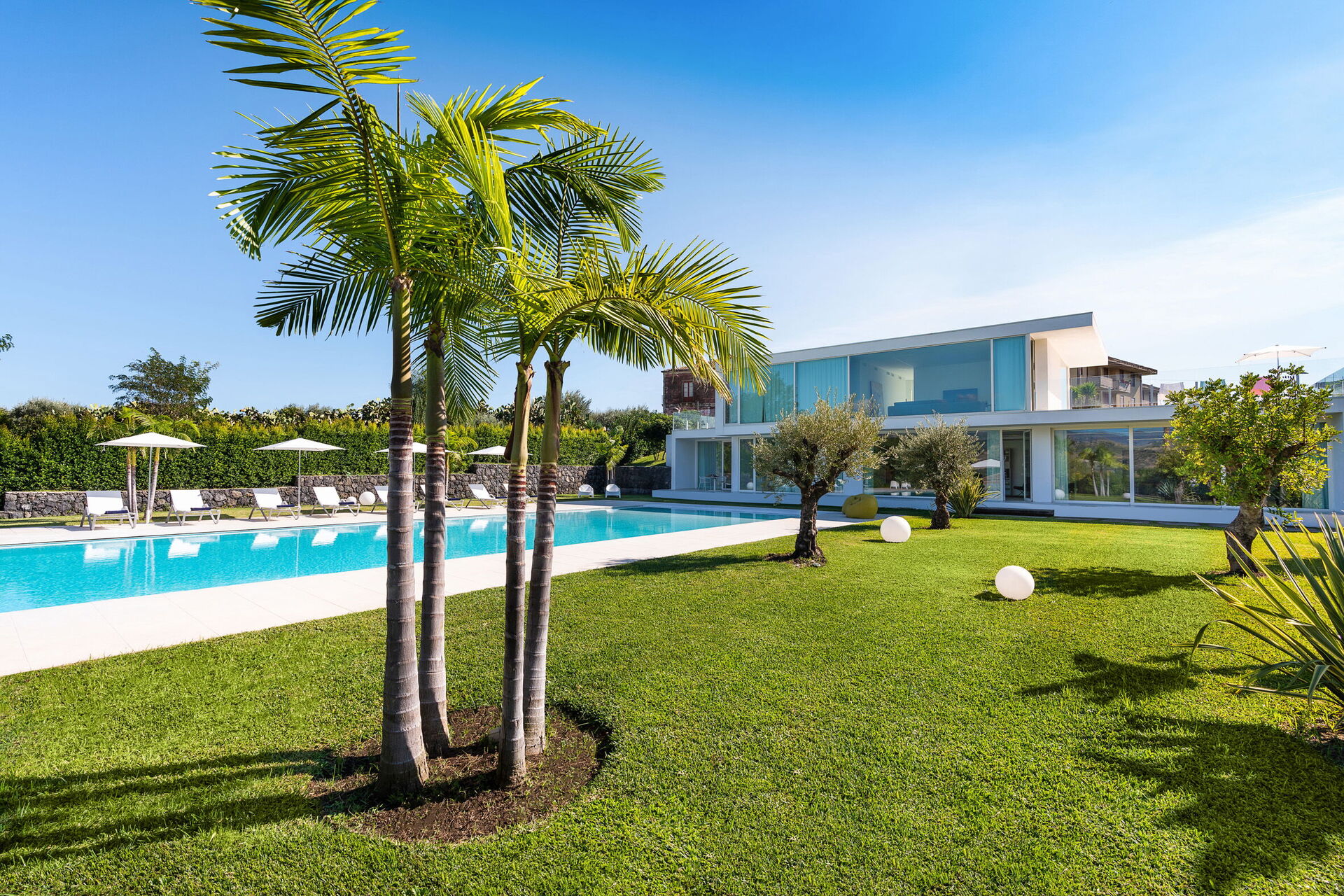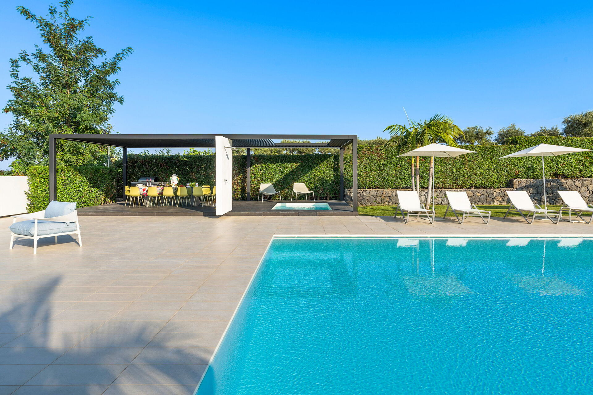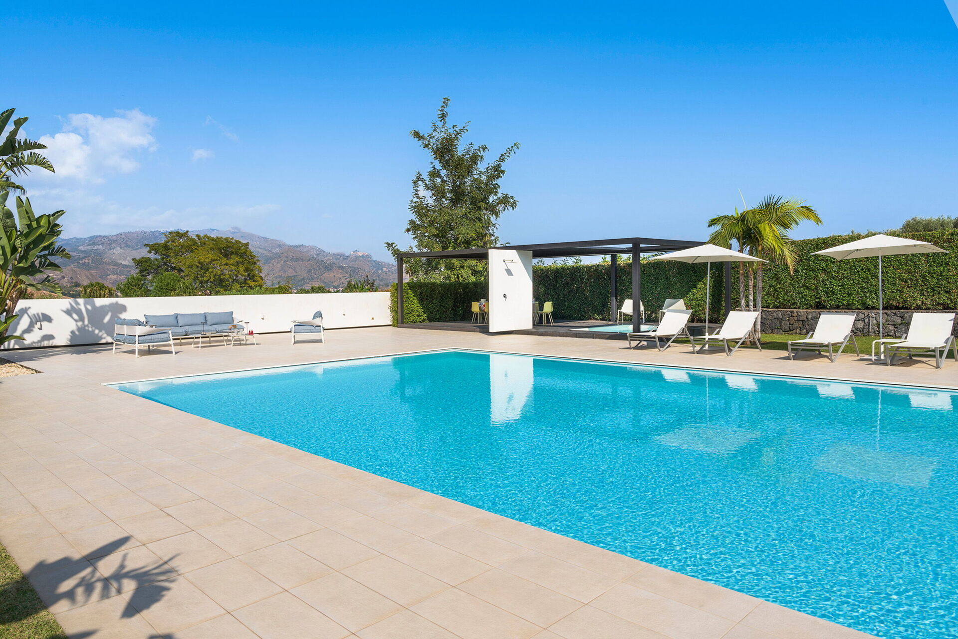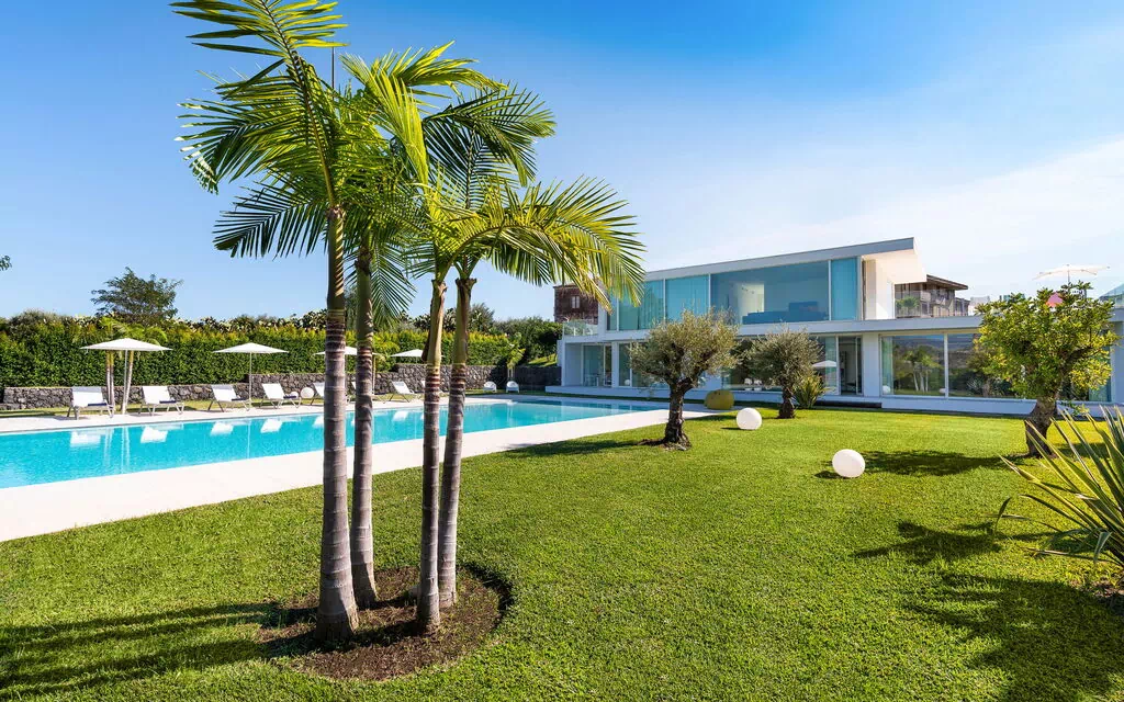 Villa Greta is a luxury property for rent with private pool situated in Sicily near Taormina. Ideal retreat for those looking for a comfortable, relaxing stay, this property is surrounded by a wonderful garden with lawn and offers spacious terraces and a large swimming pool.