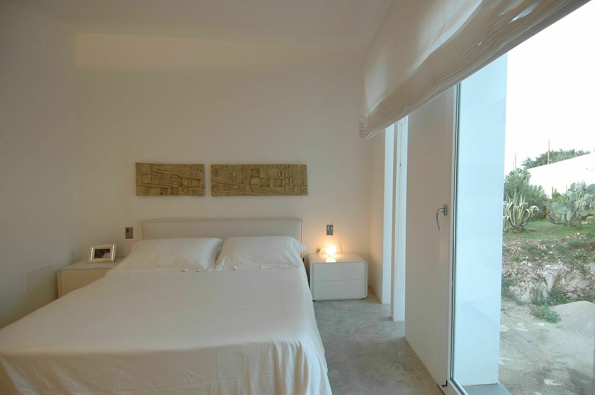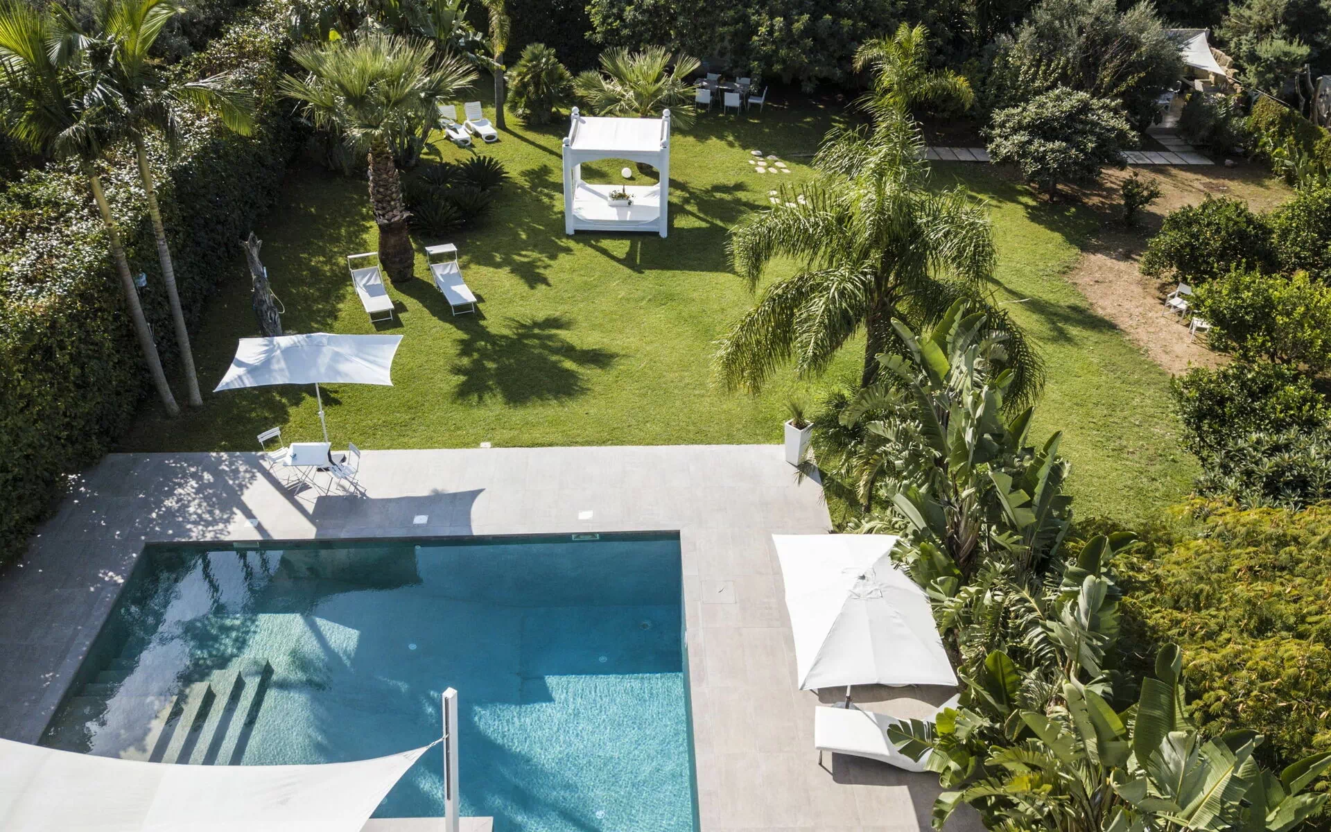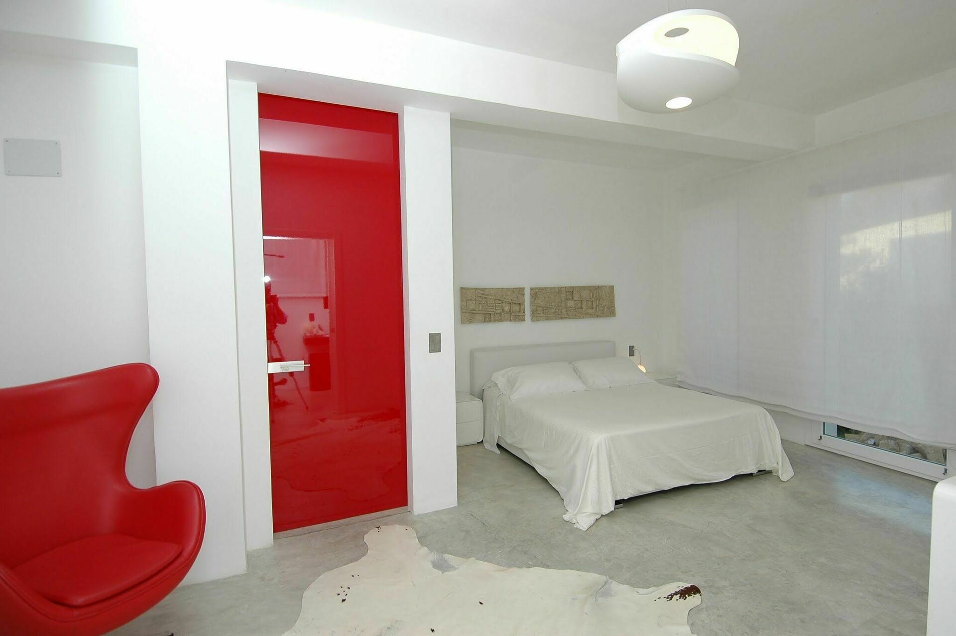 This modernist style vacation rental is set on one floor and is located in the garden that surrounds it, while the pure white structure immediately strikes the visitors attention.