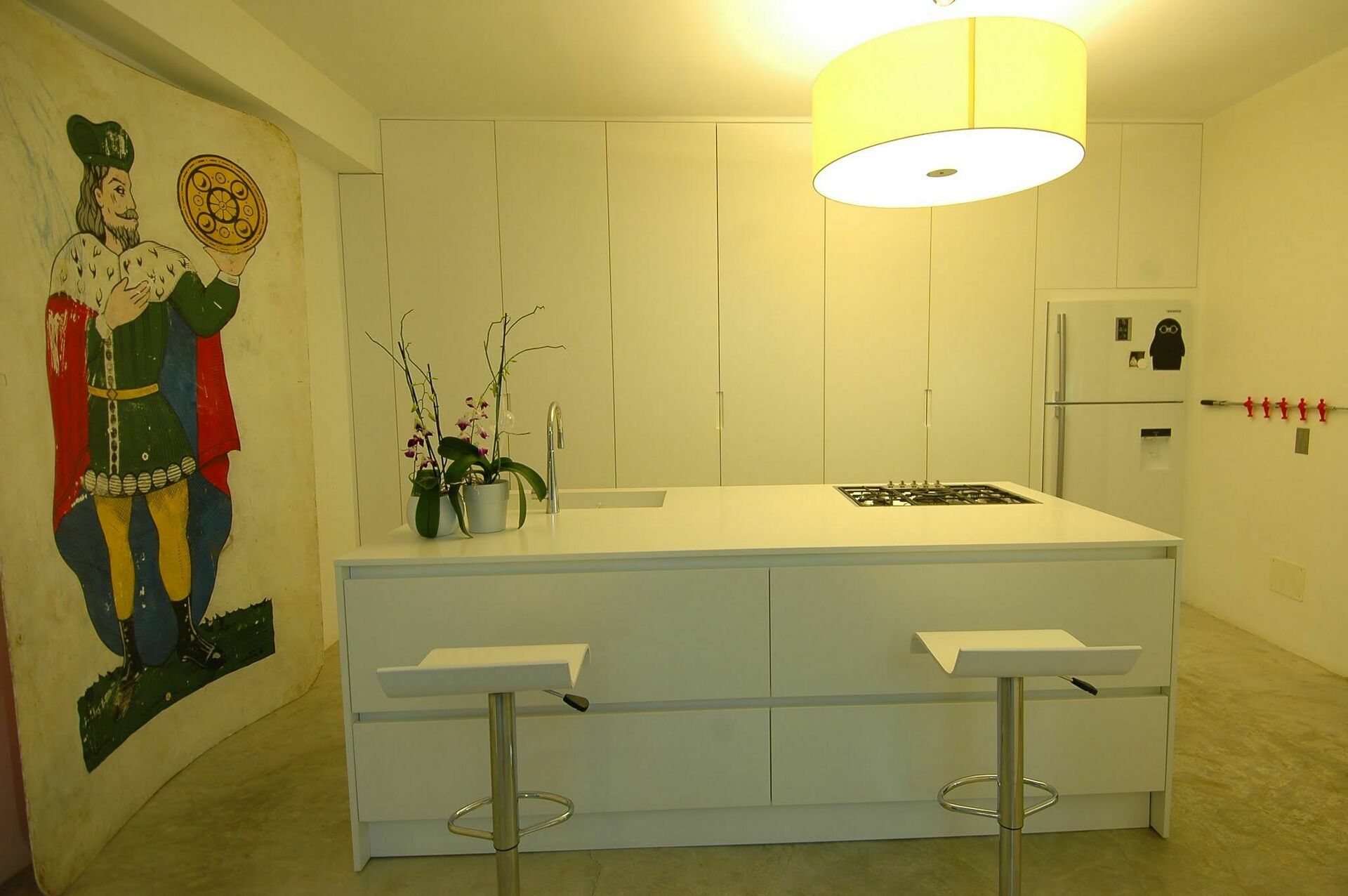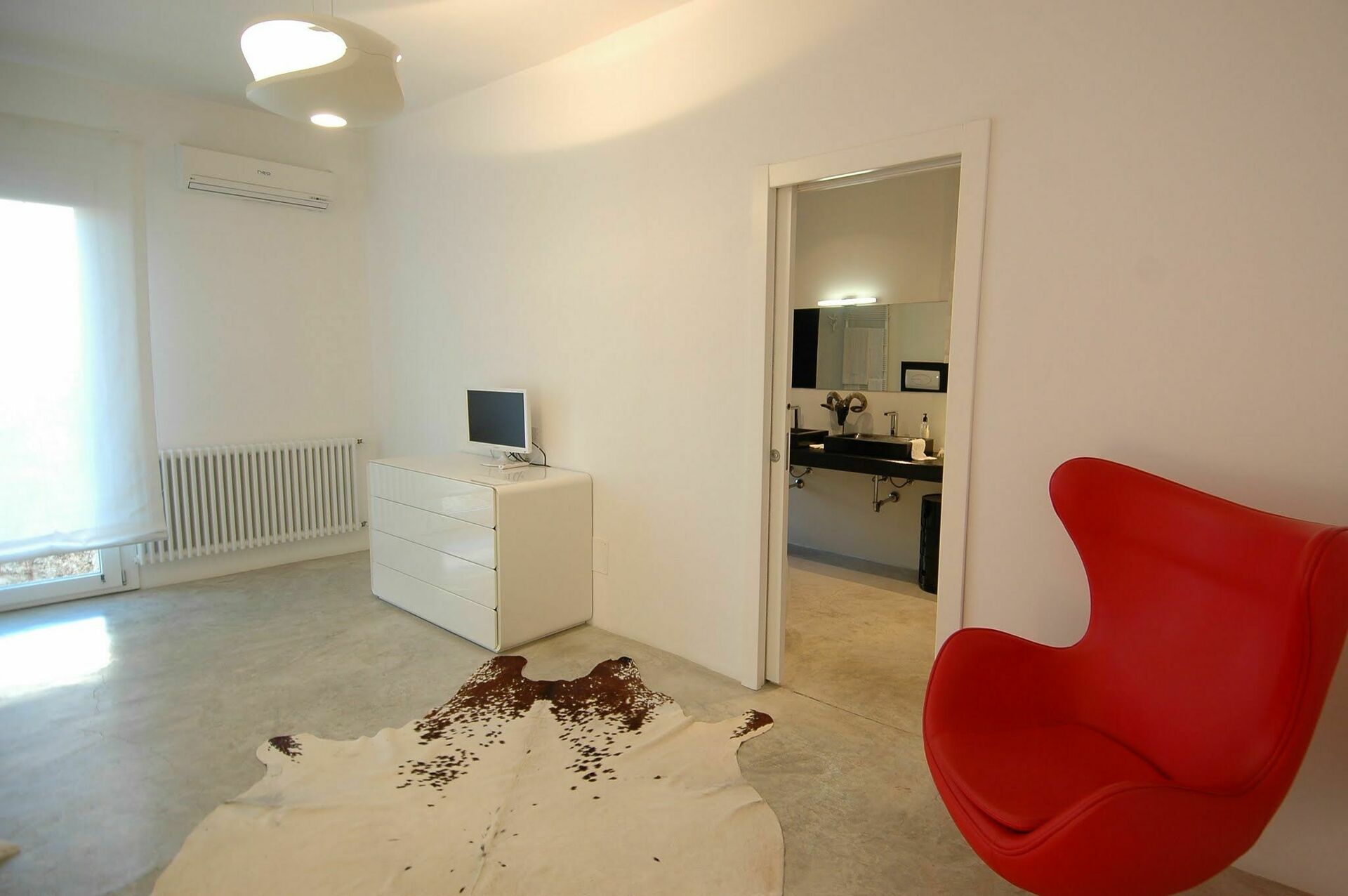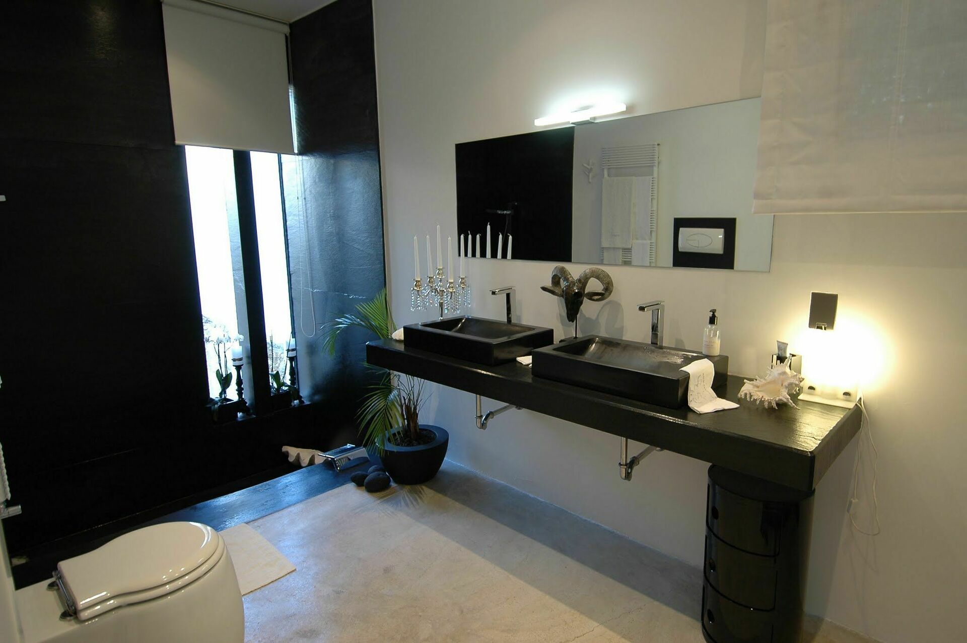 This modernist style vacation rental is set on one floor and is located in the garden that surrounds it, while the pure white structure immediately strikes the visitors attention.