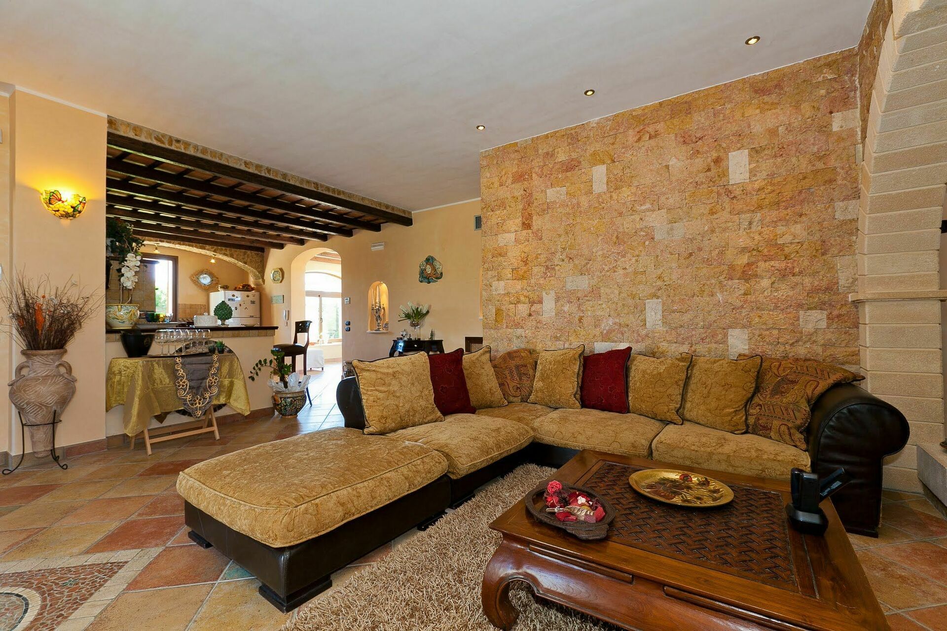 The villa is structured on two levels, you enter inside from the large and bright living room that is divided into different zones: dining, relaxing, reading corner.