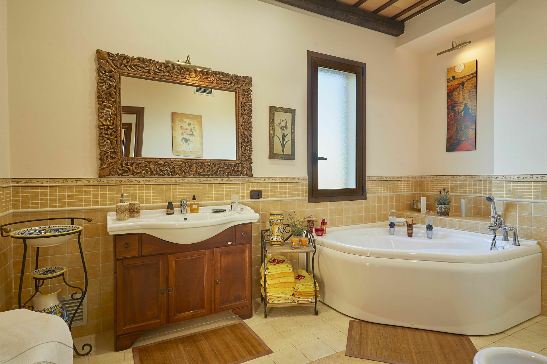 In the garden there is also a patio with kitchen, BBQ and a fine Sicilian majolica table to enjoy delicious outdoor dinner.