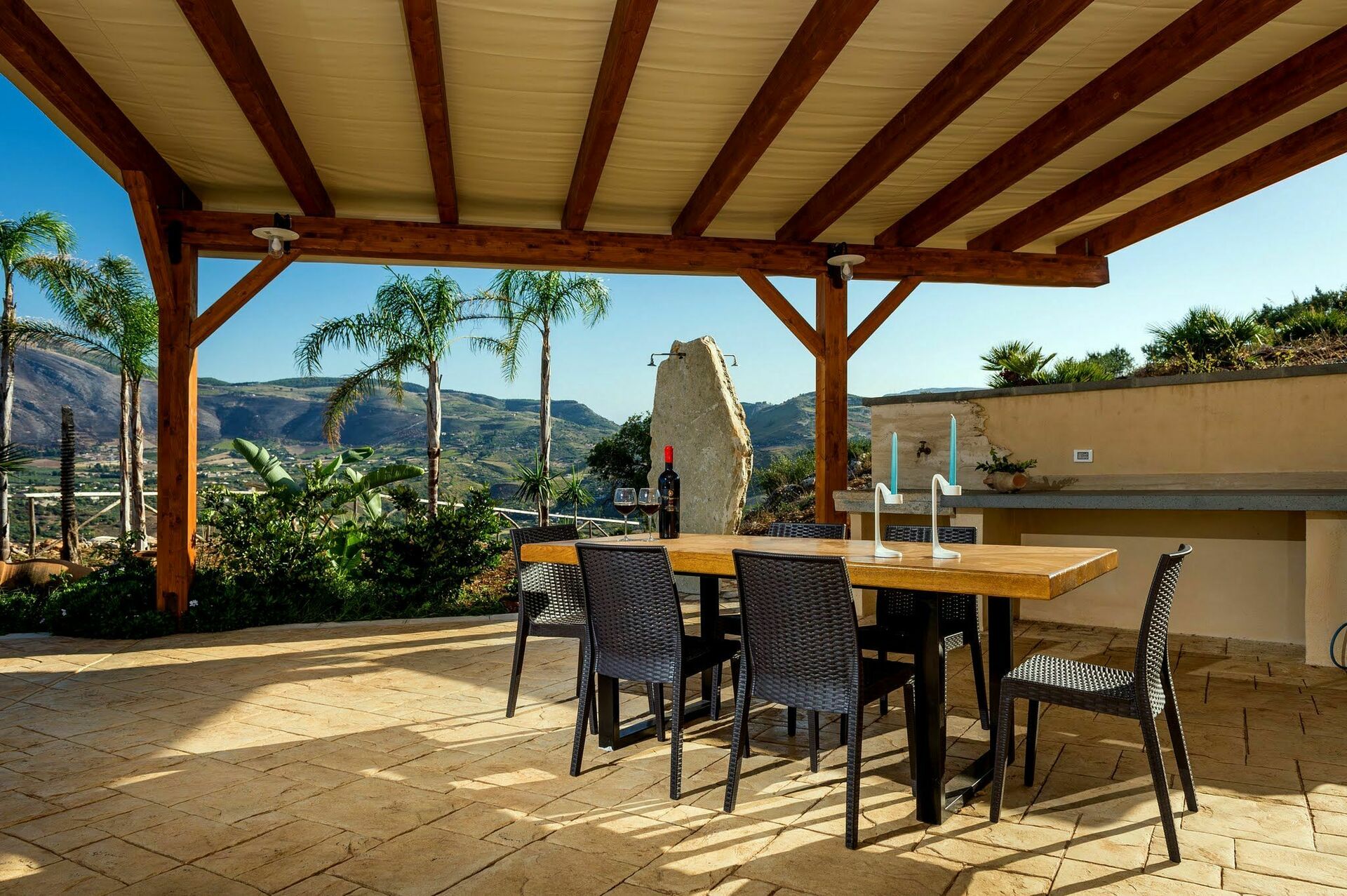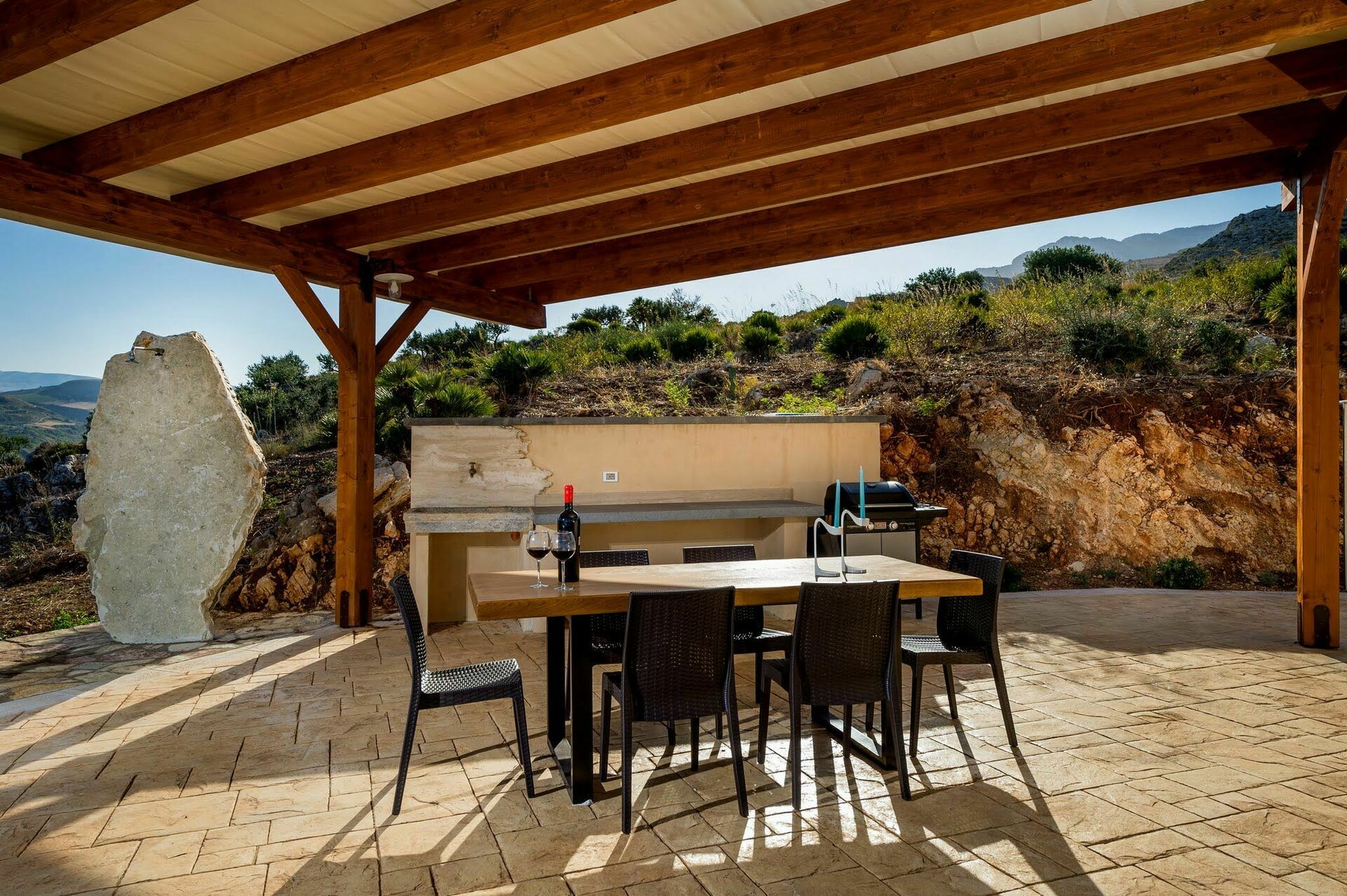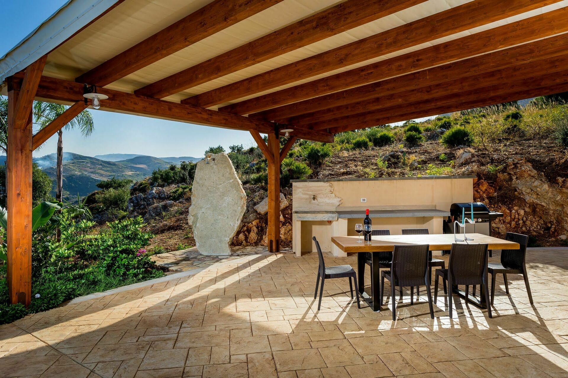 A panoramic veranda is available for the guests, ideal for outdoor living with a lunch table (under a wooden arbour) and a bbq for nice and tasty en plein air meals. All of the outside is enhanced by characteristics local-stone corners.