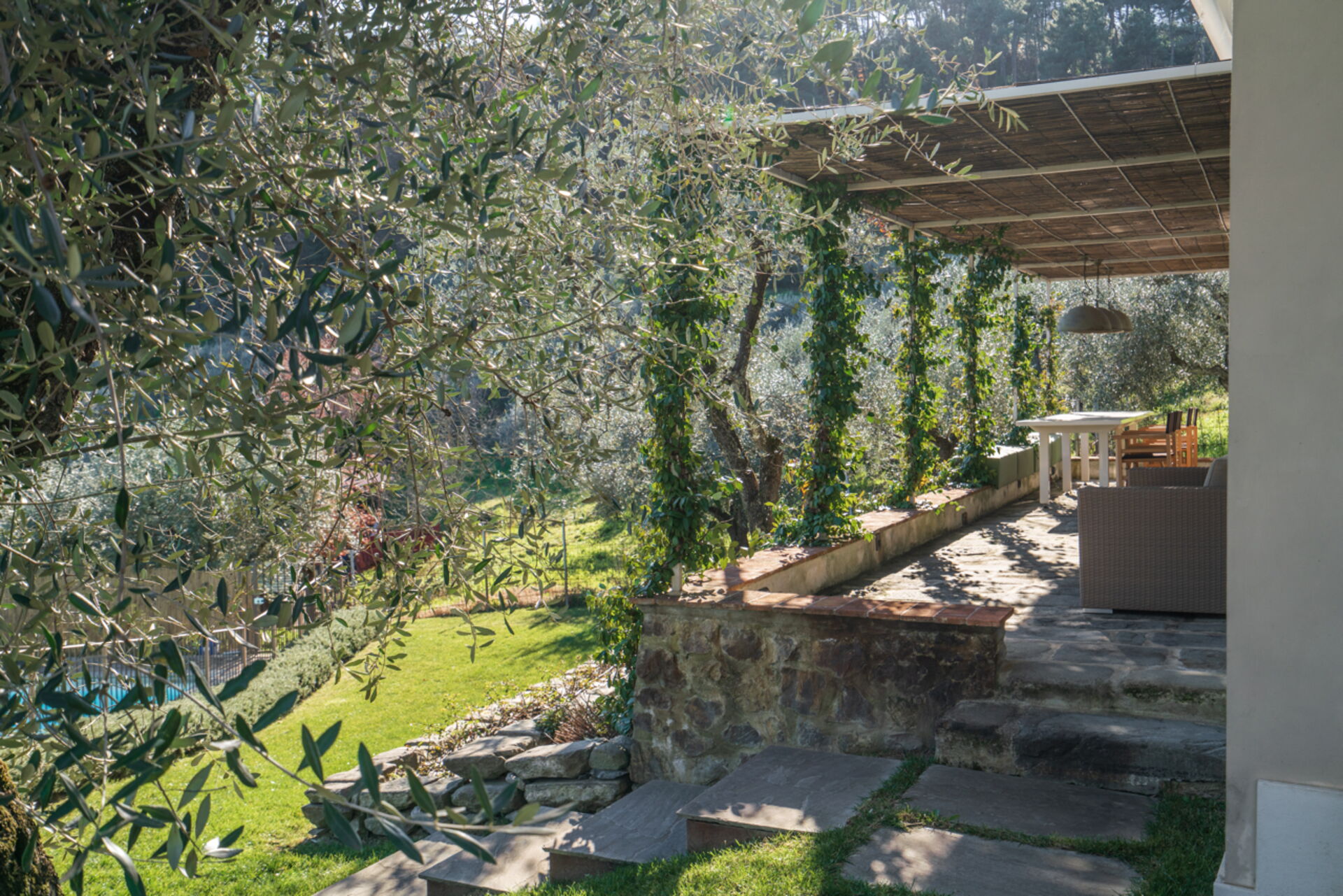 Villa immersa nel verde tra ulivi e vigneti, silenziosa e rilassante.