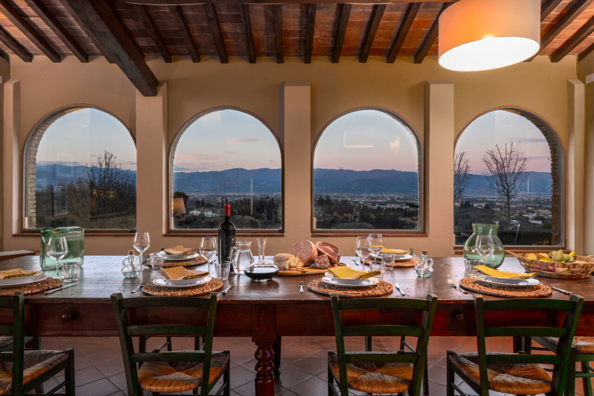 The outdoor loggia provided a culinary experience unlike any other. Surrounded by the villa's lush gardens and overlooking the picturesque Tuscan landscape, it was the perfect setting for al fresco dining. The loggia's cleanliness was as impeccable as its indoor counterpart, offering an open-air environment that was as pristine as it was inviting.