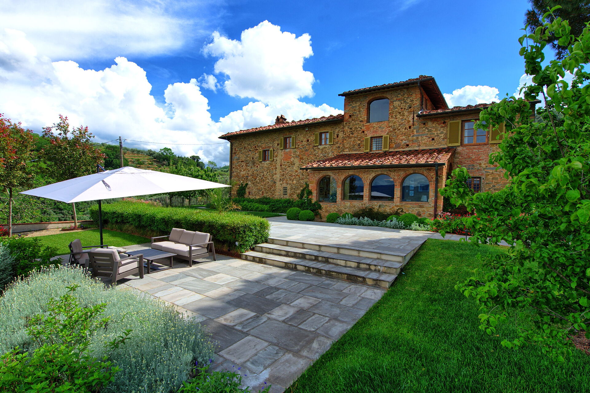 Distances: the village of Cantagrillo is around 5 minutes drive from the villa where there are restaurants, banks, a post office, supermarkets, chemists and medical services. Pistoia 9 km. Firenze 38 km (Airport), Pisa 68 km (Airport), Lucca 50 km, the seaside resorts of Versilia, Forte dei Marmi, Viareggio, Pietrasanta 80 km.