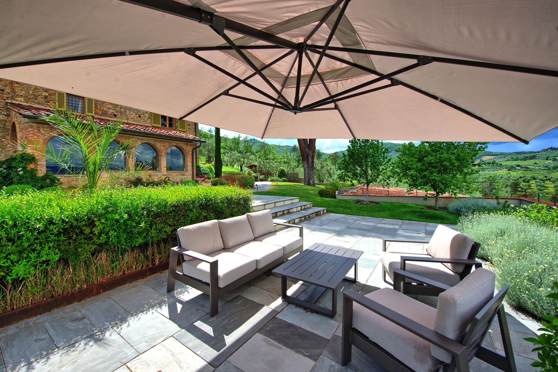 This home is a beautiful classic stone Tuscan villa.Perfectly appointed with comfortable furnishings and decor. The pool is surrounded by a very nice olive orchard. Very secluded, quiet and inviting. We loved hitting the pool after full days exploring. The home is perched on a hill with an incredible view of the valley. Surrounded by grape vines, olive orchards and a beautiful nursery below. Would not hesitate to return! Miss it already.