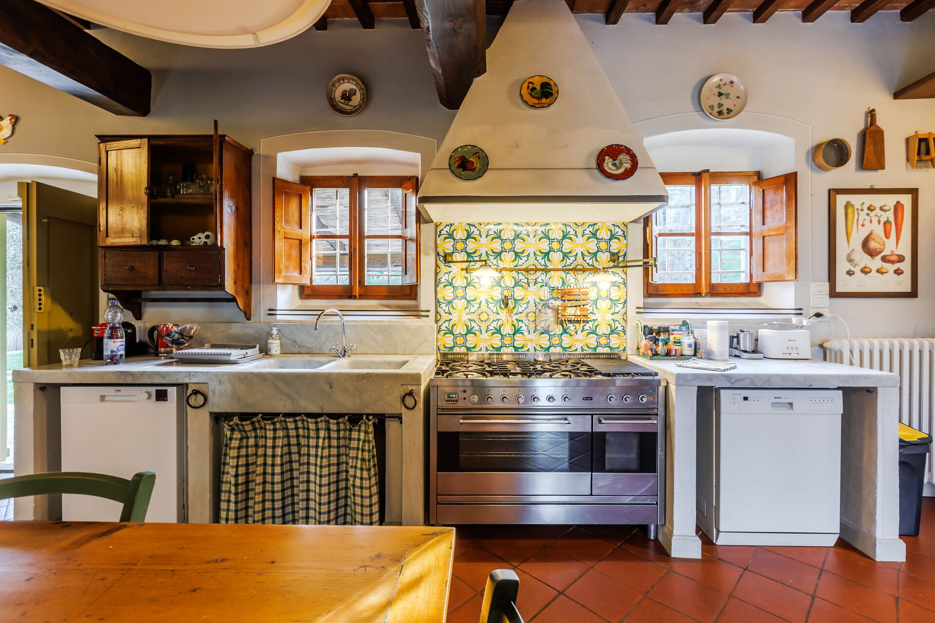 The outdoor loggia provided a culinary experience unlike any other. Surrounded by the villa's lush gardens and overlooking the picturesque Tuscan landscape, it was the perfect setting for al fresco dining. The loggia's cleanliness was as impeccable as its indoor counterpart, offering an open-air environment that was as pristine as it was inviting.