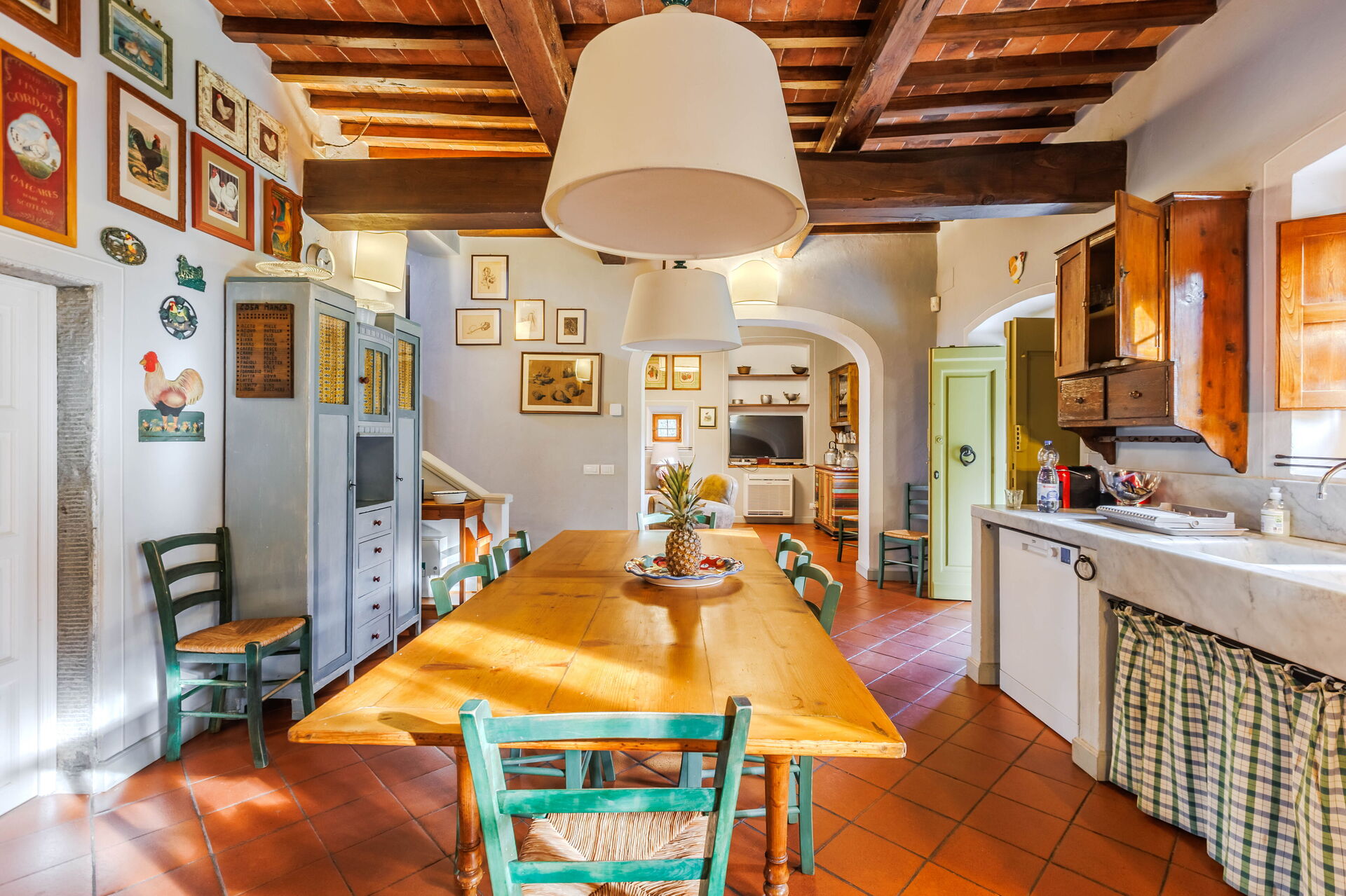 The villa itself exudes elegance and authenticity. The architecture is a perfect representation of traditional Tuscan design, with its terracotta roof, rustic stone walls, and charming wooden shutters. Inside, every corner exudes warmth and comfort. The rooms are spacious and tastefully decorated, effortlessly combining modern amenities with classic Italian charm. The attention to detail is evident, from the carefully chosen furnishings to the artwork that adorns the walls. I particularly enjoyed the fully equipped kitchen, which allowed us to indulge in cooking our own Tuscan feasts using fresh local ingredients.