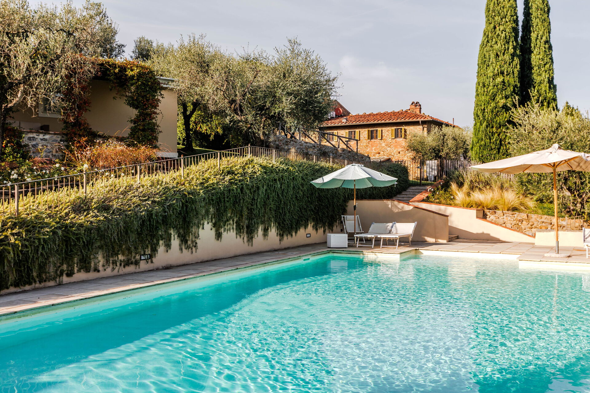 This home is a beautiful classic stone Tuscan villa.Perfectly appointed with comfortable furnishings and decor. The pool is surrounded by a very nice olive orchard. Very secluded, quiet and inviting. We loved hitting the pool after full days exploring. The home is perched on a hill with an incredible view of the valley. Surrounded by grape vines, olive orchards and a beautiful nursery below. Would not hesitate to return! Miss it already.