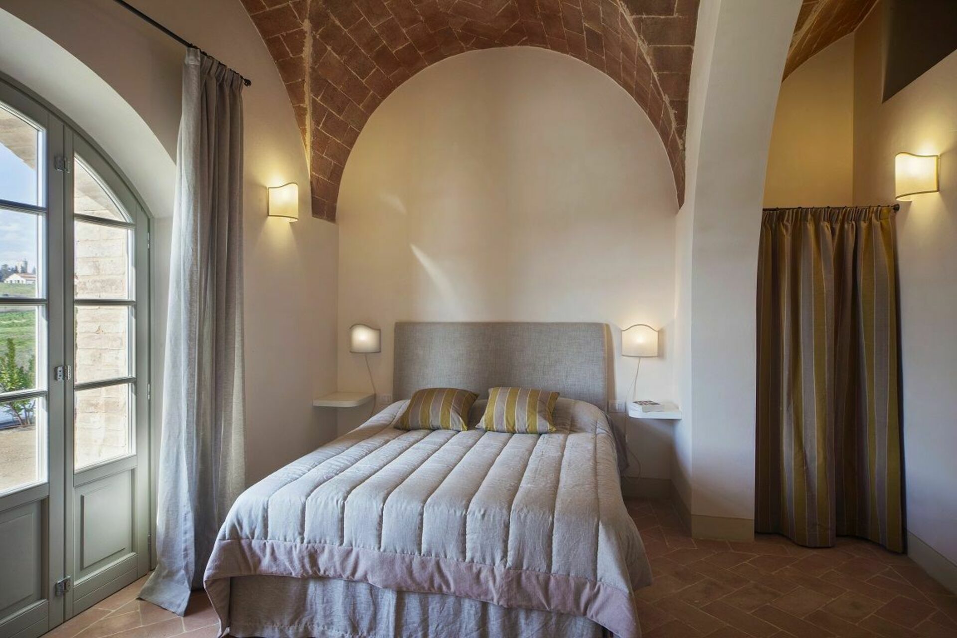 The villa and surrounding area are even more beautiful than the photos suggest. We spent six days there and were sad to leave. Castelfalfi is very centrally located to all the major towns in Tuscany. Most places are about 30-45 minutes away. The villa itself is within a beautiful hotel and golf resort, so you have access to nice restaurants on the property nearby. We loved the kitchen. It has two large sets of French doors that open up completely so that you feel like you’re indoor/outdoor at the same time. We loved cooking and eating there - though we mostly ate in the covered patio, which has a nice picnic table.We loved the kitchen. It has two large sets of French doors that open up completely so that you feel like you’re indoor/outdoor at the same We loved the bedrooms. I stayed in the master bedroom which has brick vault ceilings and french doors that open to give a wonderful view of the countryside. The other bedroom also has French doors.time. We loved cooking and eating there - though we mostly ate in the covered patio, which has a nice picnic table. We loved the bedrooms. I stayed in the master bedroom which has brick vault ceilings and french doors that open to give a wonderful view of the countryside. The other bedroom also has French doors.Fantastic. The three major sites - San Gimignano, Sienna, Volterra, Pisa - are all 30-45 minutes away. Florence is about 1h20 minutes.The pool is nice though it’s often filled with bugs given that the villa is out in the countryside. However the property is well maintained and we saw staff cleaning the pool a few times during our stay.