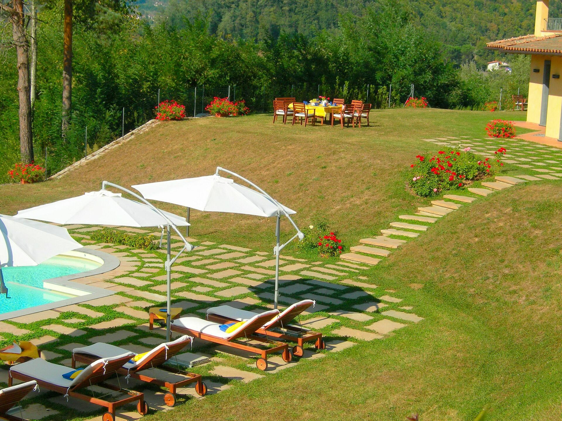 Villa Saida offers a wonderful pool to spend moments of leisure with friends, a big garden for the open air days with a barbecue area that makes fantastic your stay in the warm seasons. Also materials for roof and floor are handmade in Tuscany. Certainly modernity is not forgotten.