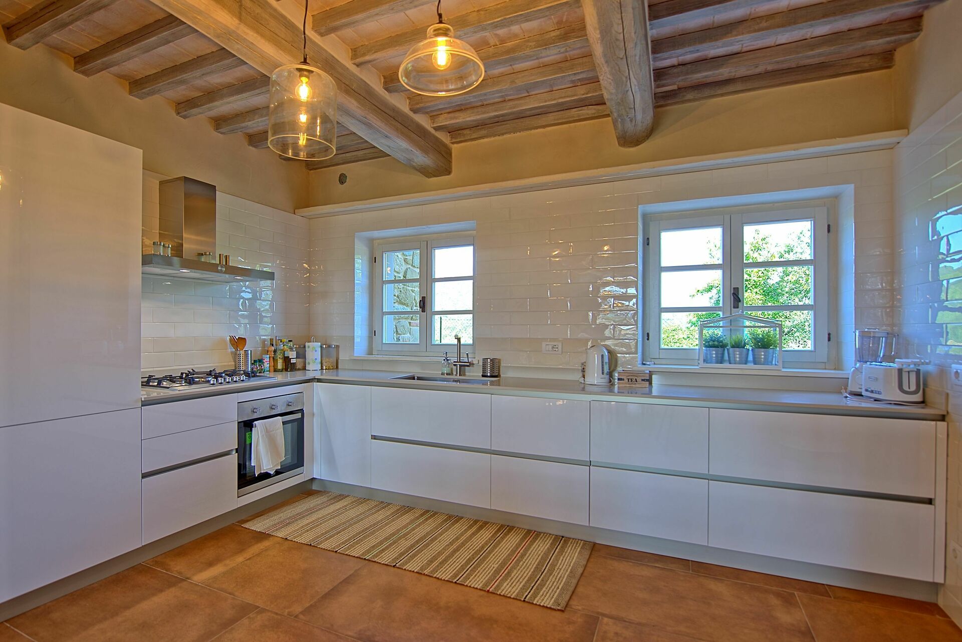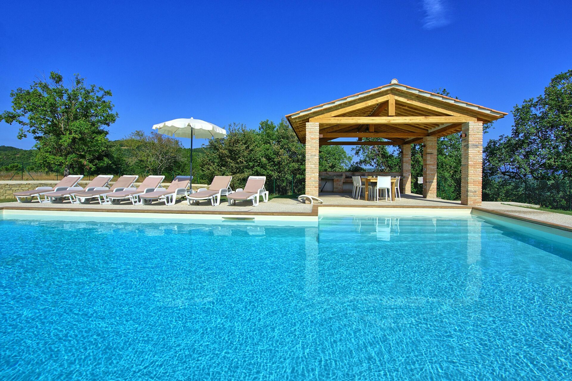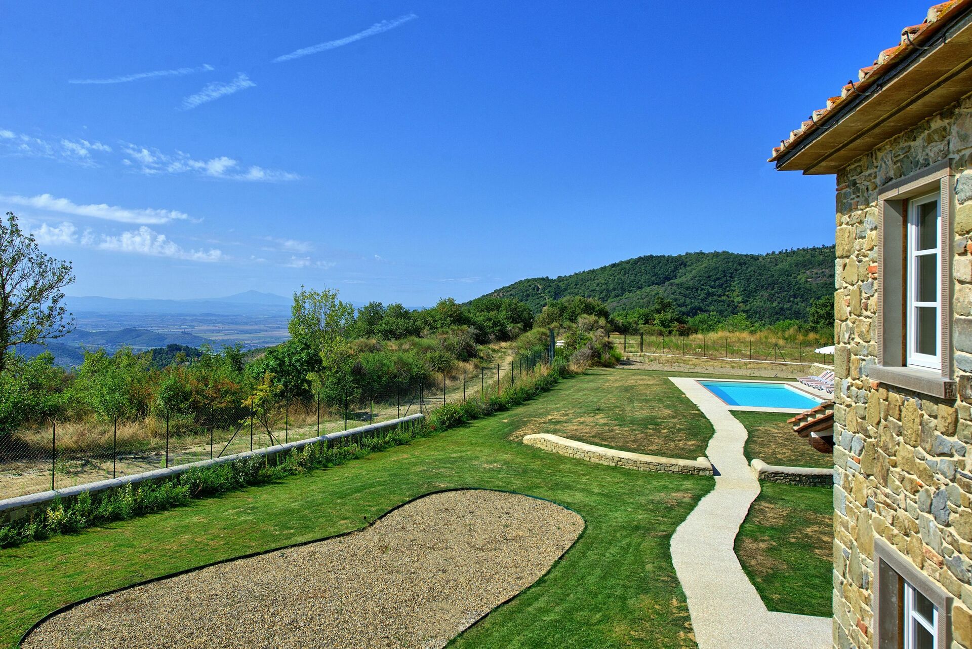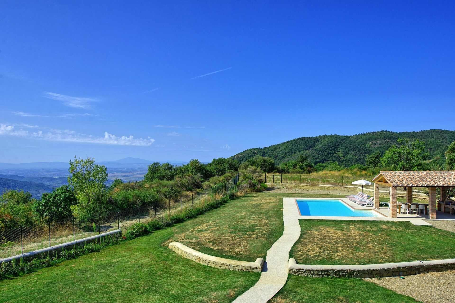 Beautiful holiday villa for rent with a private swimming pool in Tuscany, close to Castiglion Fiorentino, between the historic cities of Cortona and Arezzo. The property finished construction in 2018 and offers a very comfortable interior along with beautiful outside spaces.