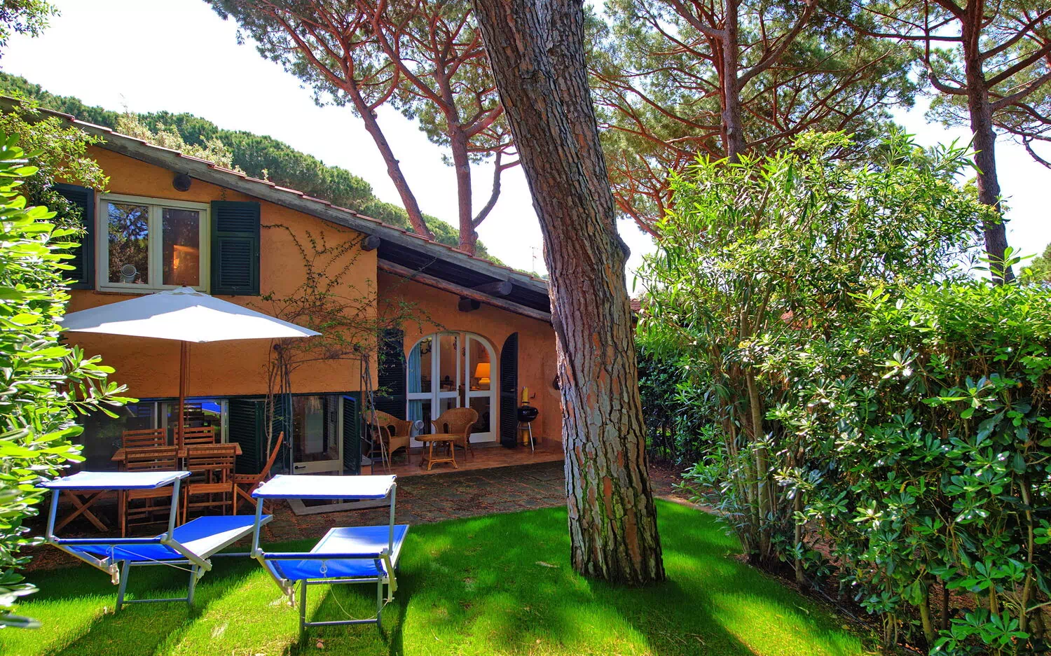 Le Dune sits in a lush pine forest just steps away from the sea, in a lovely complex less than 20 meters from the beach, facing the marvelous waters of Castiglione della Pescaia.