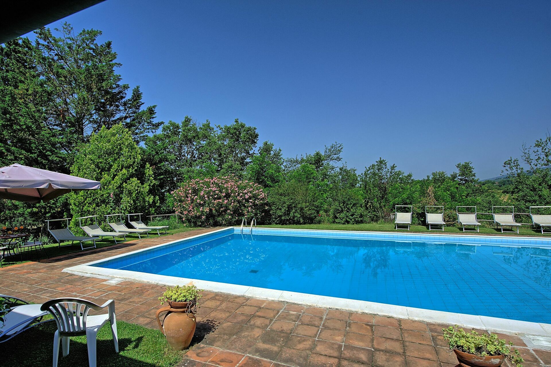 An annex with 2 double bedrooms, 2 bathrooms and kitchen is available upon request from mid June until mid September (for the rest of the year the annex is occupied by a couple who doesn't use the garden, the pool and all the outside spaces):