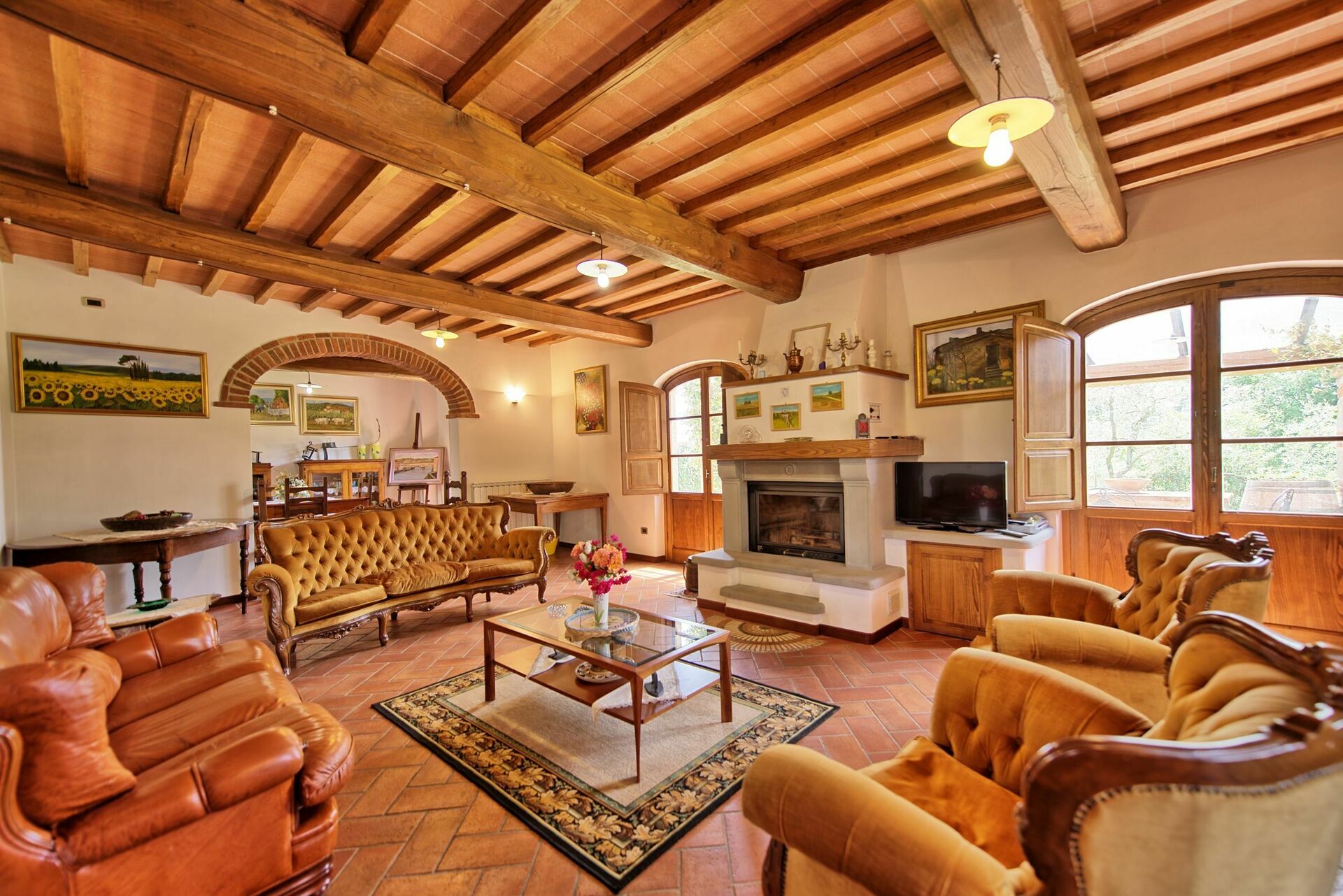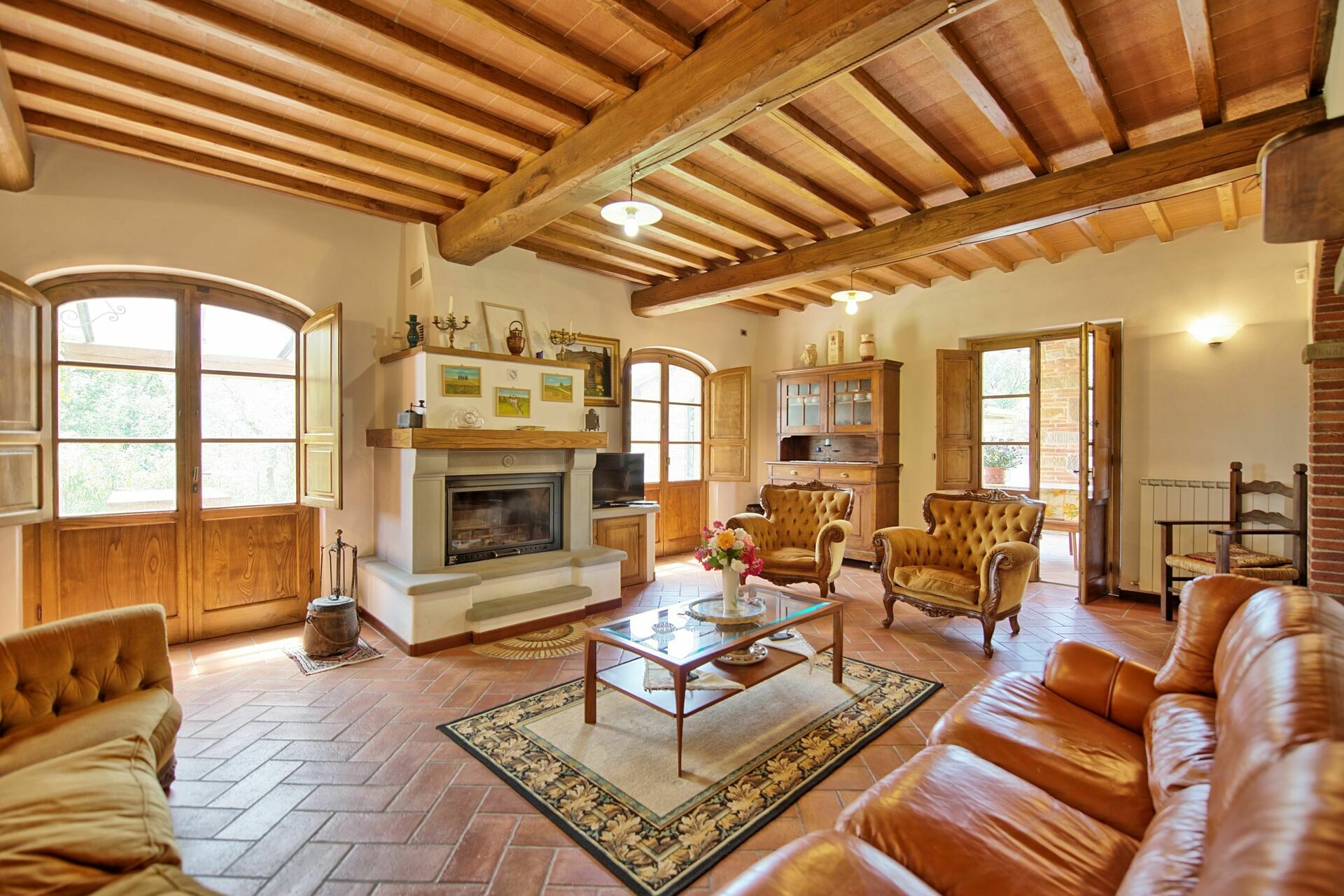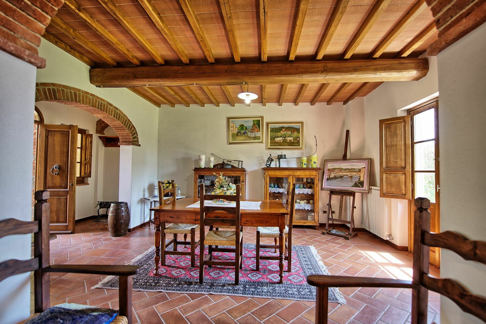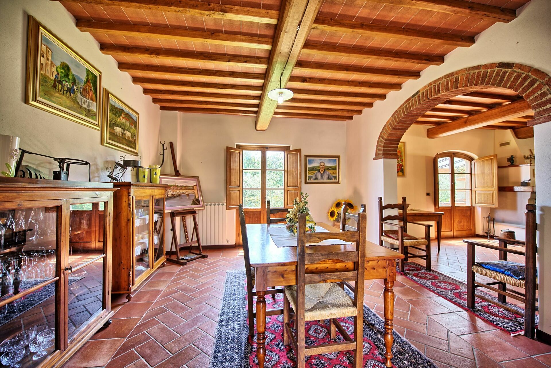 The property, which offers 4 bedrooms and 4 baths, is located at the top of a hill, where a great part of Valdarno can be viewed, and offers short and long stays during all seasons.
