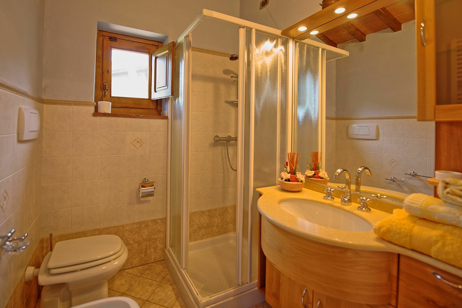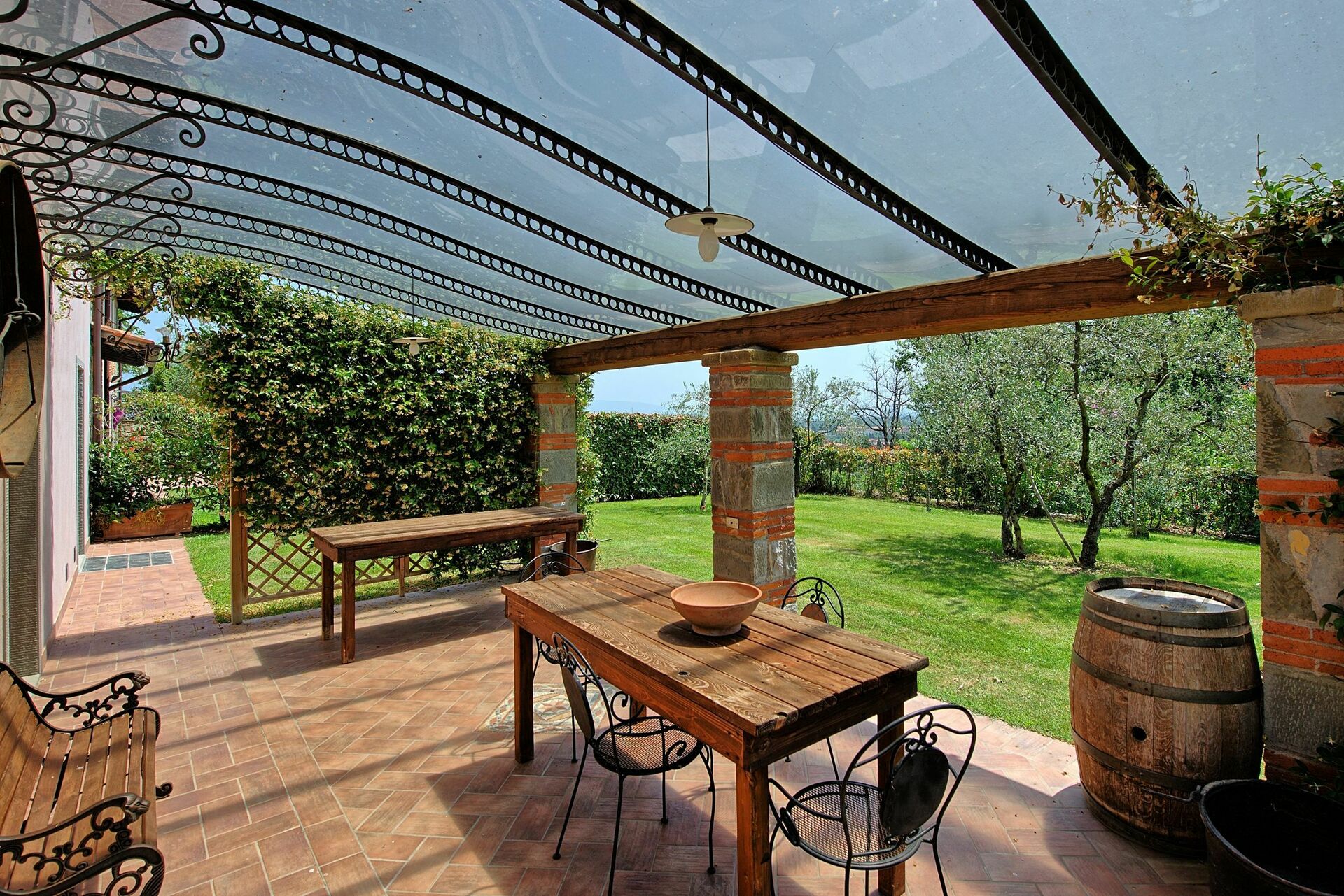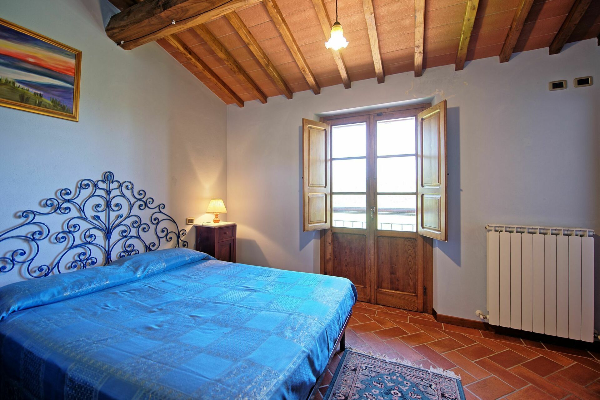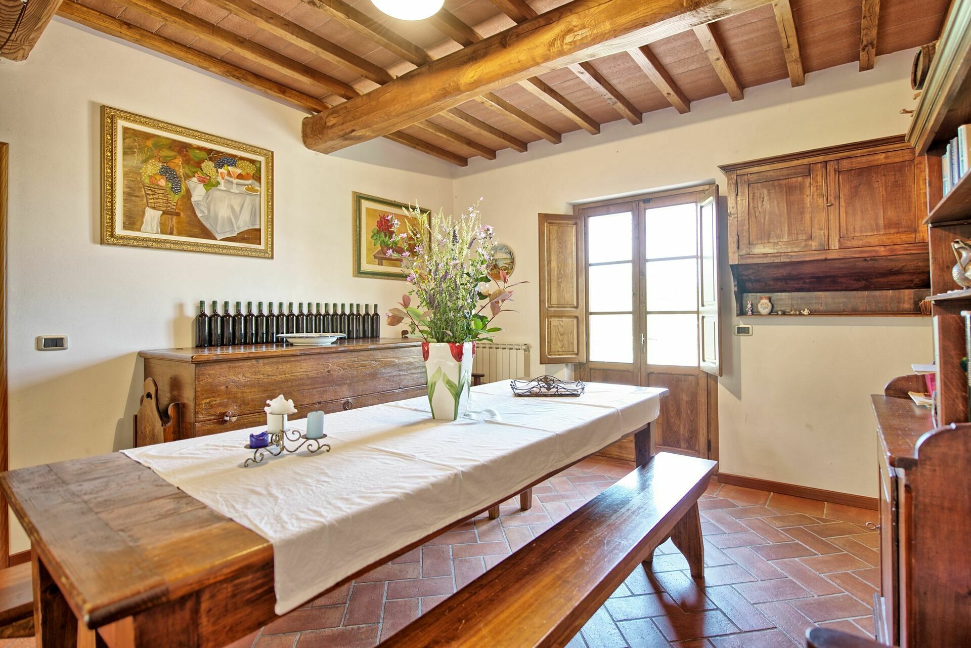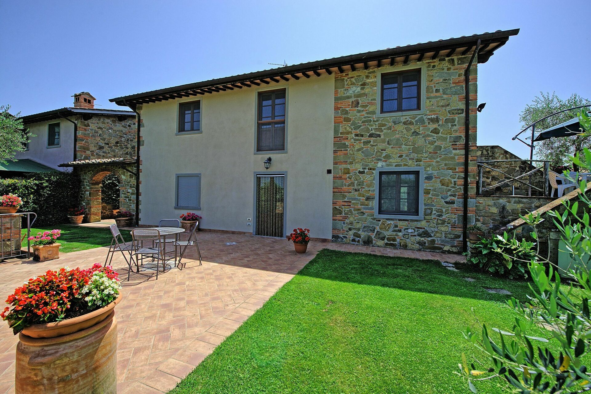 The property, which offers 4 bedrooms and 4 baths, is located at the top of a hill, where a great part of Valdarno can be viewed, and offers short and long stays during all seasons.