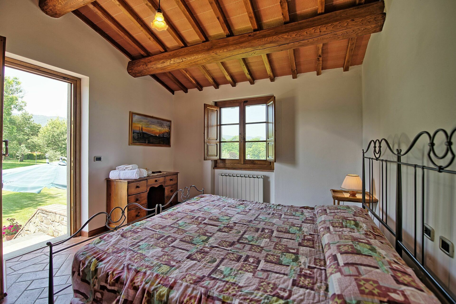 1 room with double bed and access to the garden