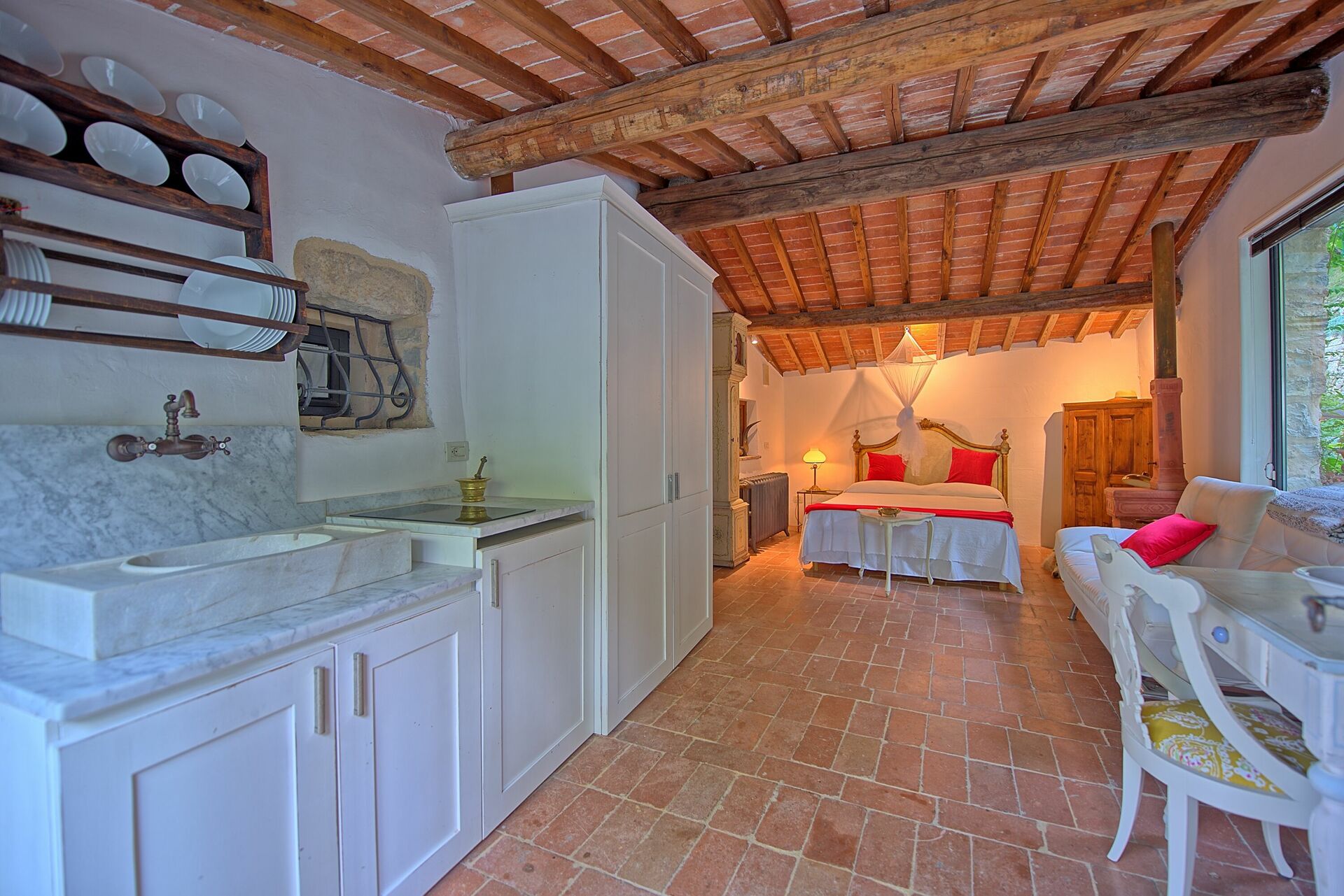Beautifully furnished and designed for comfort, Villa Ancora offers an exclusive retreat with stunning landscapes. It provides easy access to the Florence region’s rich cultural heritage, natural beauty, and renowned culinary experiences. The villa’s inviting garden, complete with a barbecue area, is perfect for outdoor dining and summer gatherings, while a cozy fireplace inside creates a warm and welcoming atmosphere on cooler days.