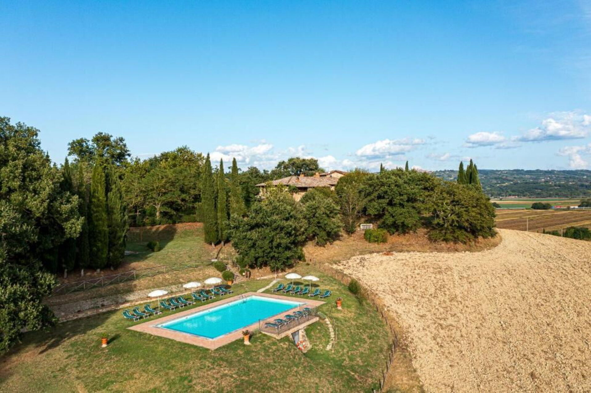 Guests will enjoy the enchanting views of the Tuscan hills: the area is very calm and secluded. Large farm fields and woods surround the house and a fantastic pool awaits you for cooling off on hot summer days. Relaxation and tranquility are guaranteed!
