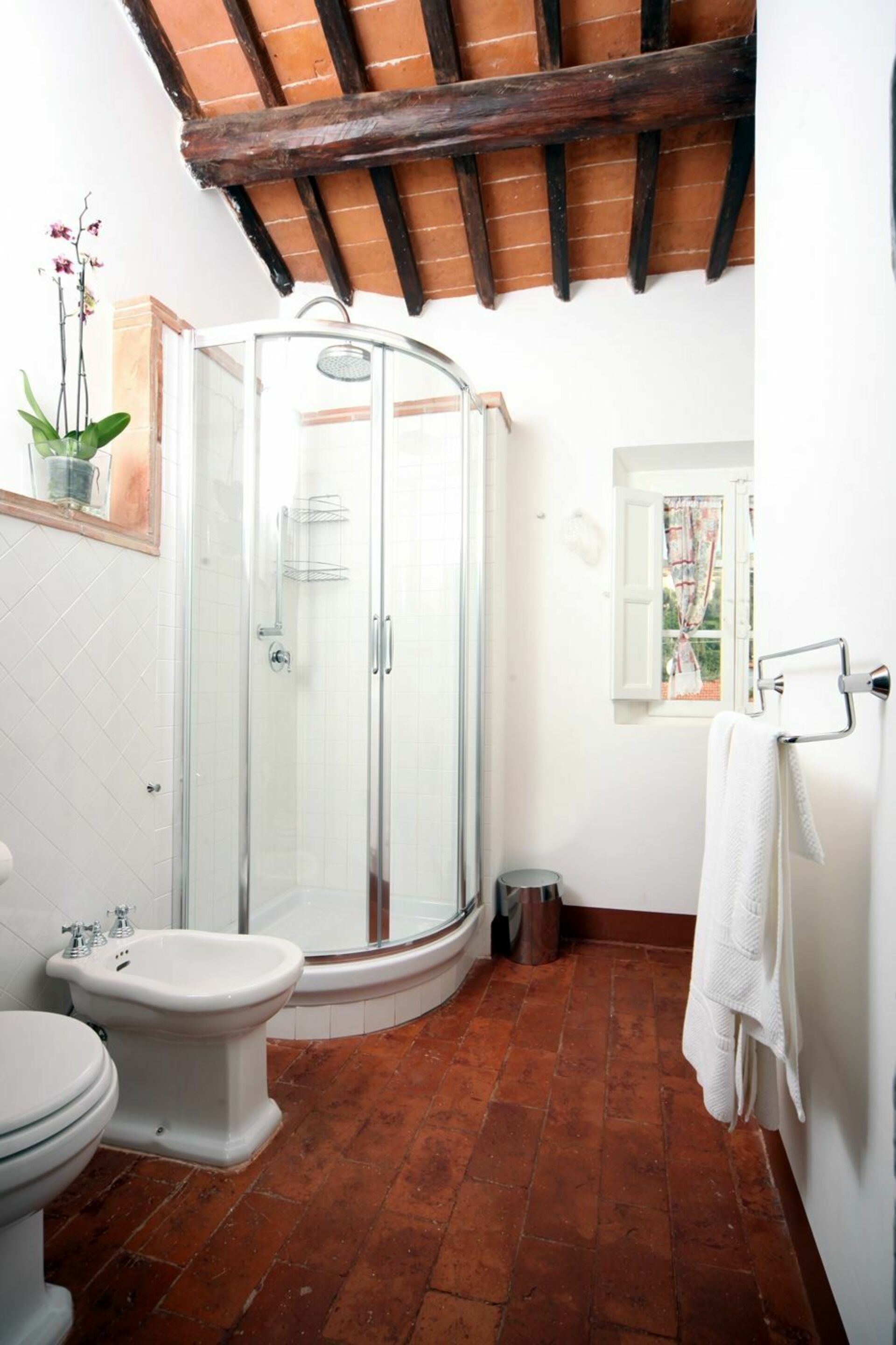 The decor is light and a mixture of inherited furniture and modern features that stand in nice contrast with the rustic wooden beams and terracotta floors.