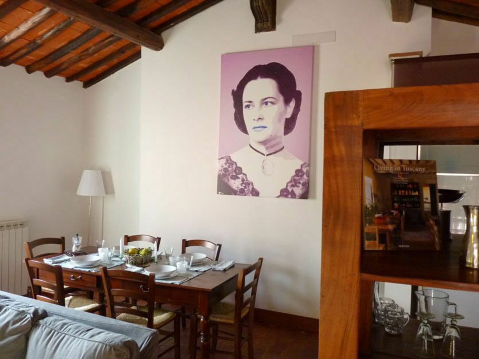 The interior walls are decorated with paintings in a Pop Art Andy Warhol type in which the main image portrays Gina, one of the "Women of Bargecchia" which gives its name to this Annex.