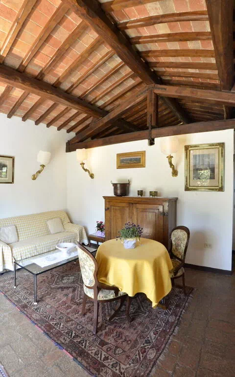 Ground floor: living room with dining area and kitchen corner, double bedroom, bathroom with shower.