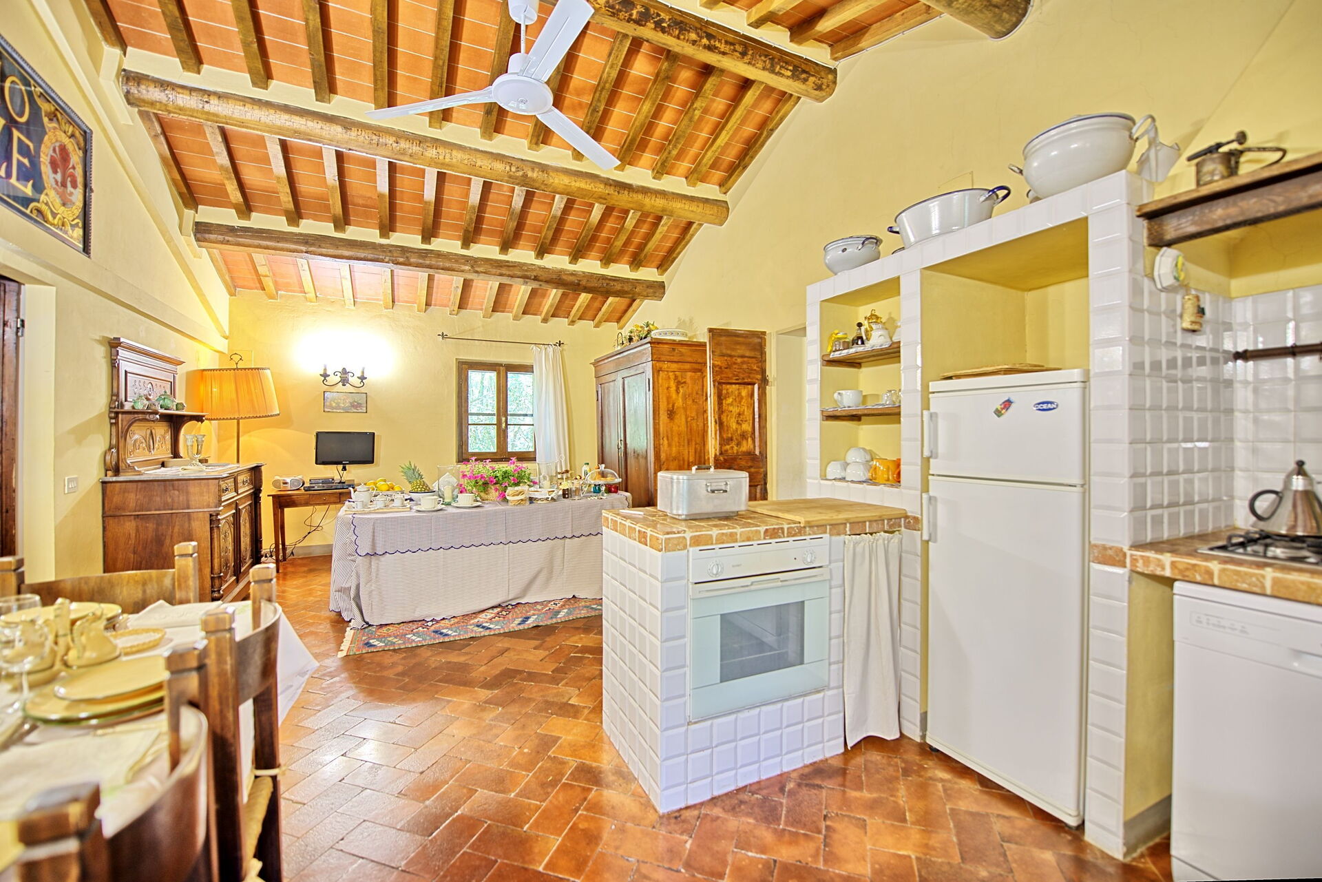 The furnishings are romantic and antique, if a little rickety. The two kitchens are equipped with all the necessary utensils for self-catering.