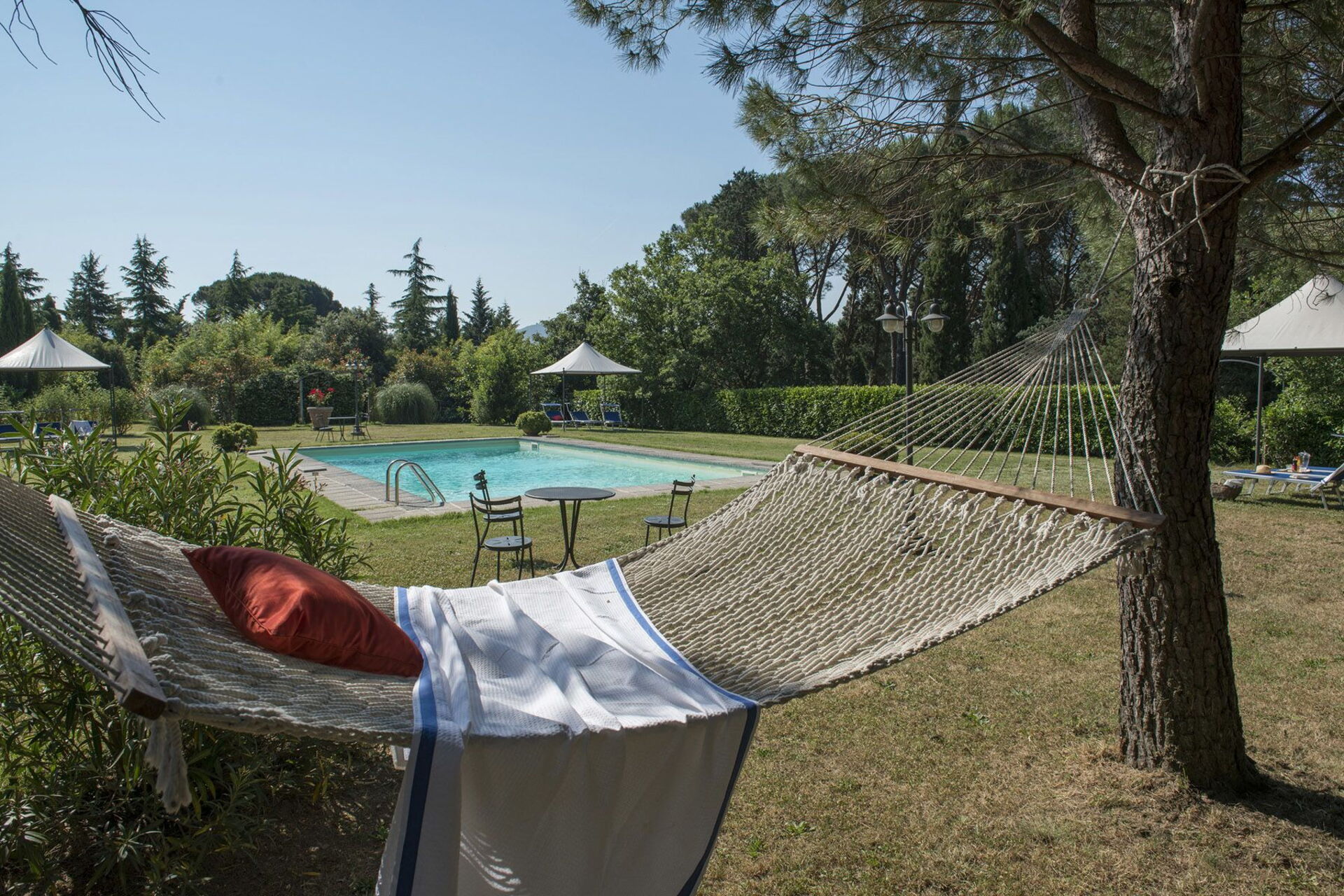 The outside areas are very large and provide a nice park with a spacious solarium area (near the pool) and some charming corners shaded by century-old tress.