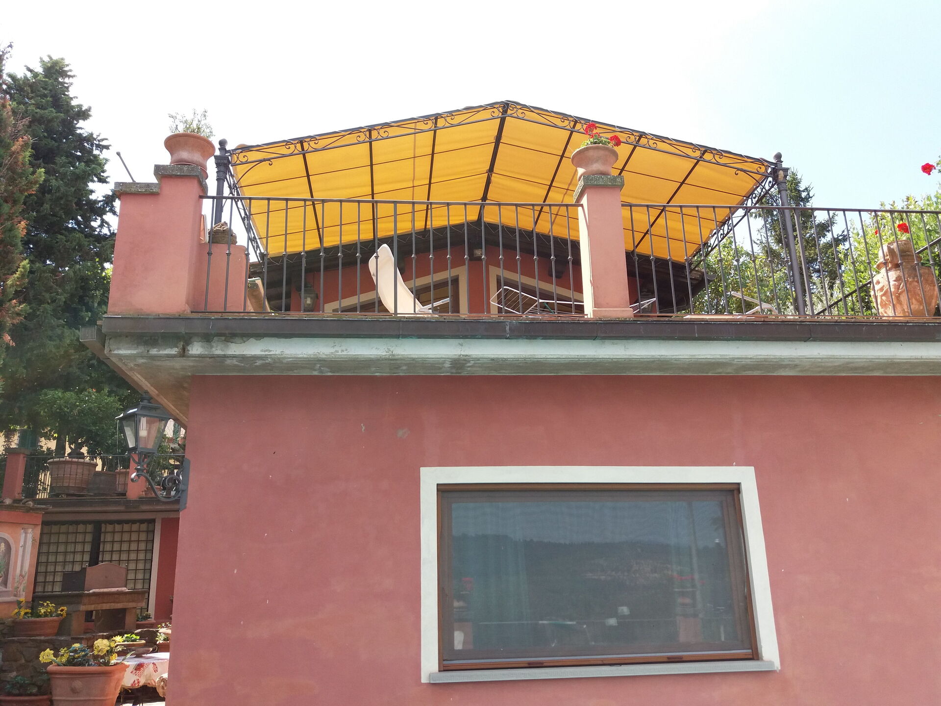Ground floor: bright living-room with piano, satellite TV and access on to a panoramic terrace with gazebo, tables and chairs.