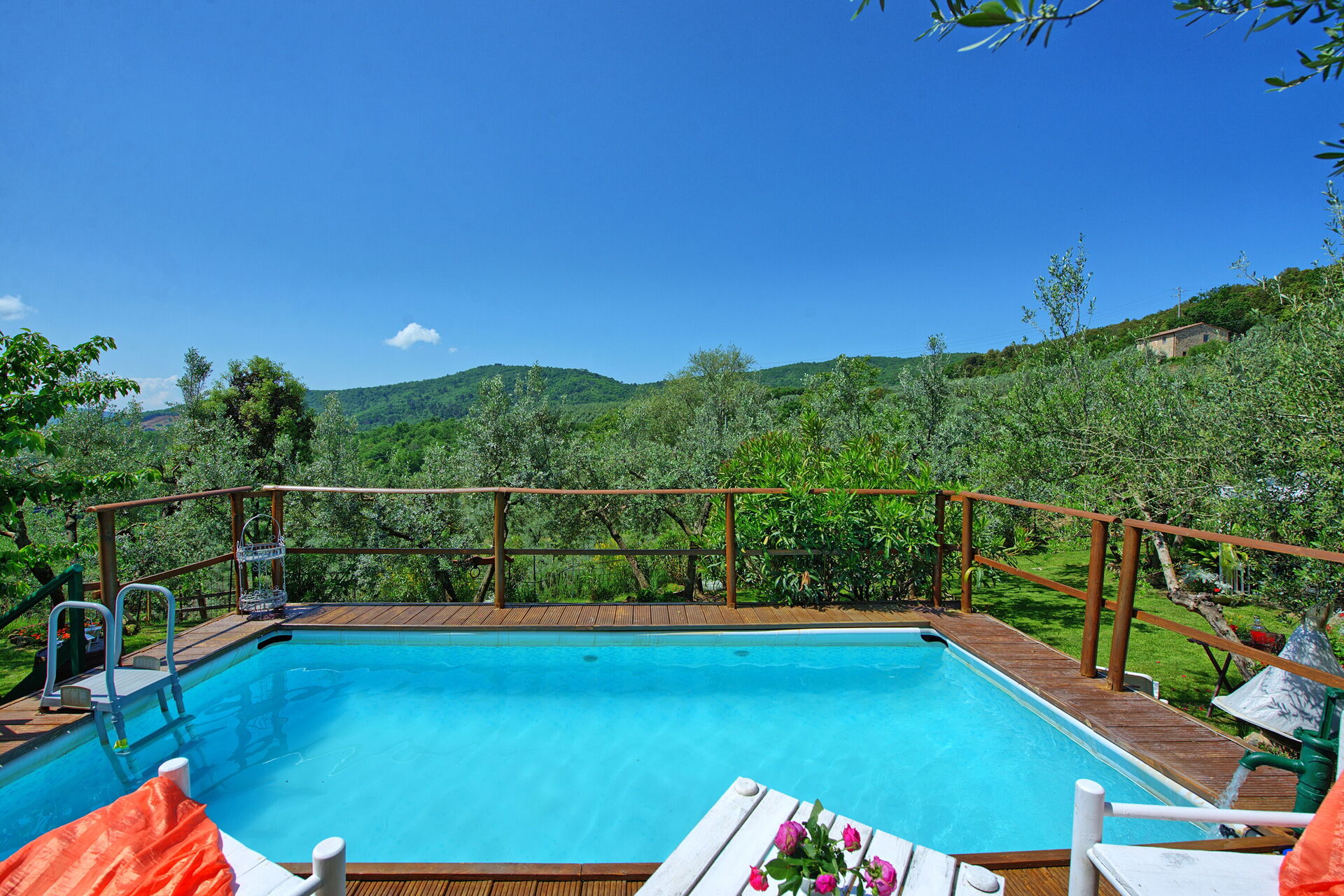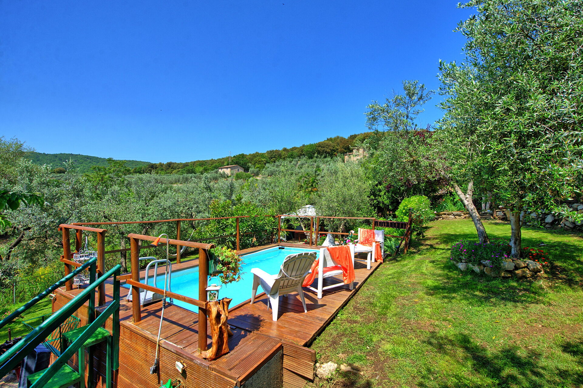 We liked this house very much: it was charming decorated, every room had nice surprising decorations, really Tuscan ! Very special was the lovely garden which was 100 m away from the house. It was a big garden, with a beautifull vieuw and and small but refreshing nice swimmingpool.