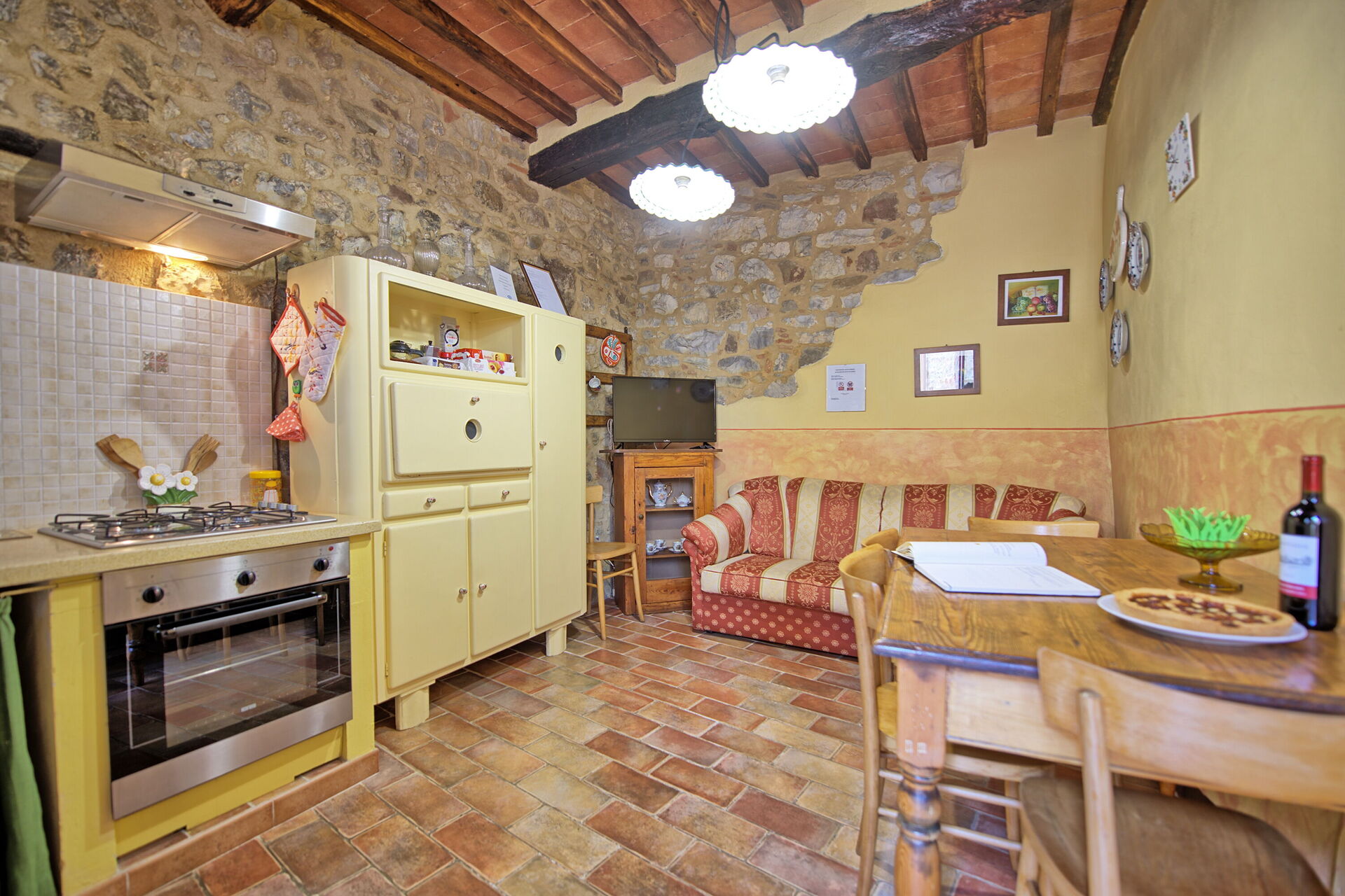 This holiday rental with private swimming pool in Chianti is perfect for a couple or a small family wanting to discover all the beauties of Tuscany: Chianti, with its typical villages and farming estates, as well as the famous Siena, San Gimignano, Florence, Arezzo are just a short drive away.