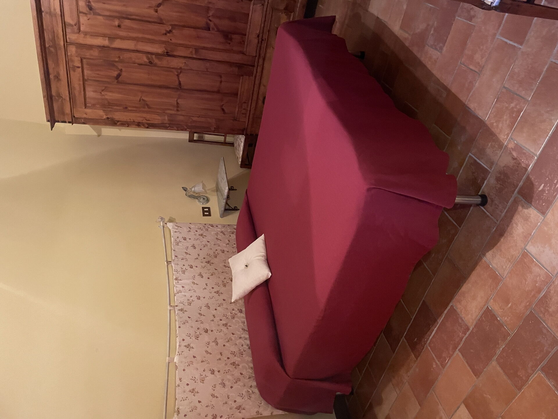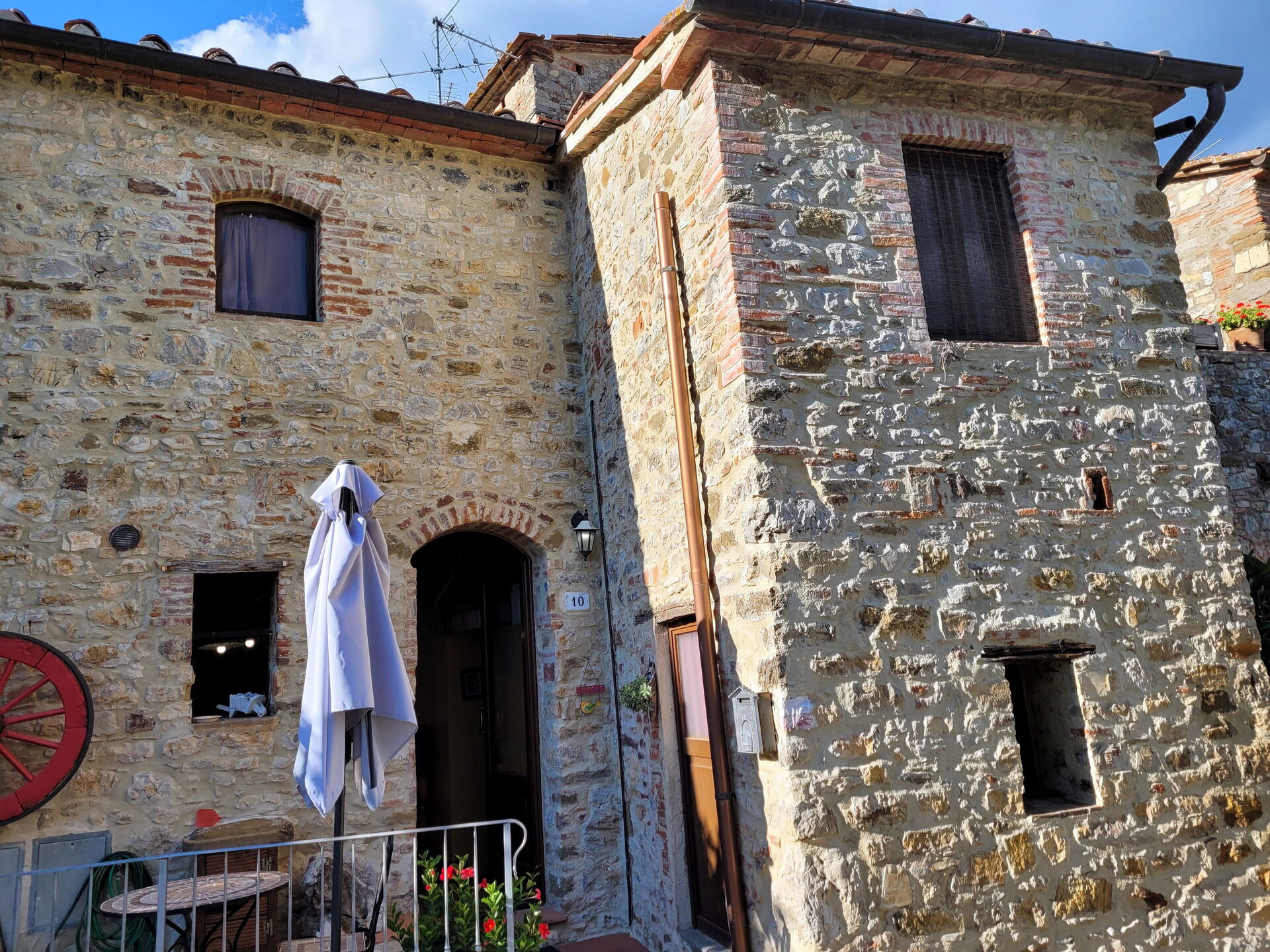 Was perfect for our stay, felt a real part of the village. The bed was really comfortable and bonus extra and a lovely surprise was the air conditioning. Was like a home from home. Couldn’t fault the cleanliness and everything you needed to maintain it. Perfect for visiting beautiful villages and towns around Tuscany. The pool and garden is very private and beautiful. Lots of sun and shade available with comfortable seating.
